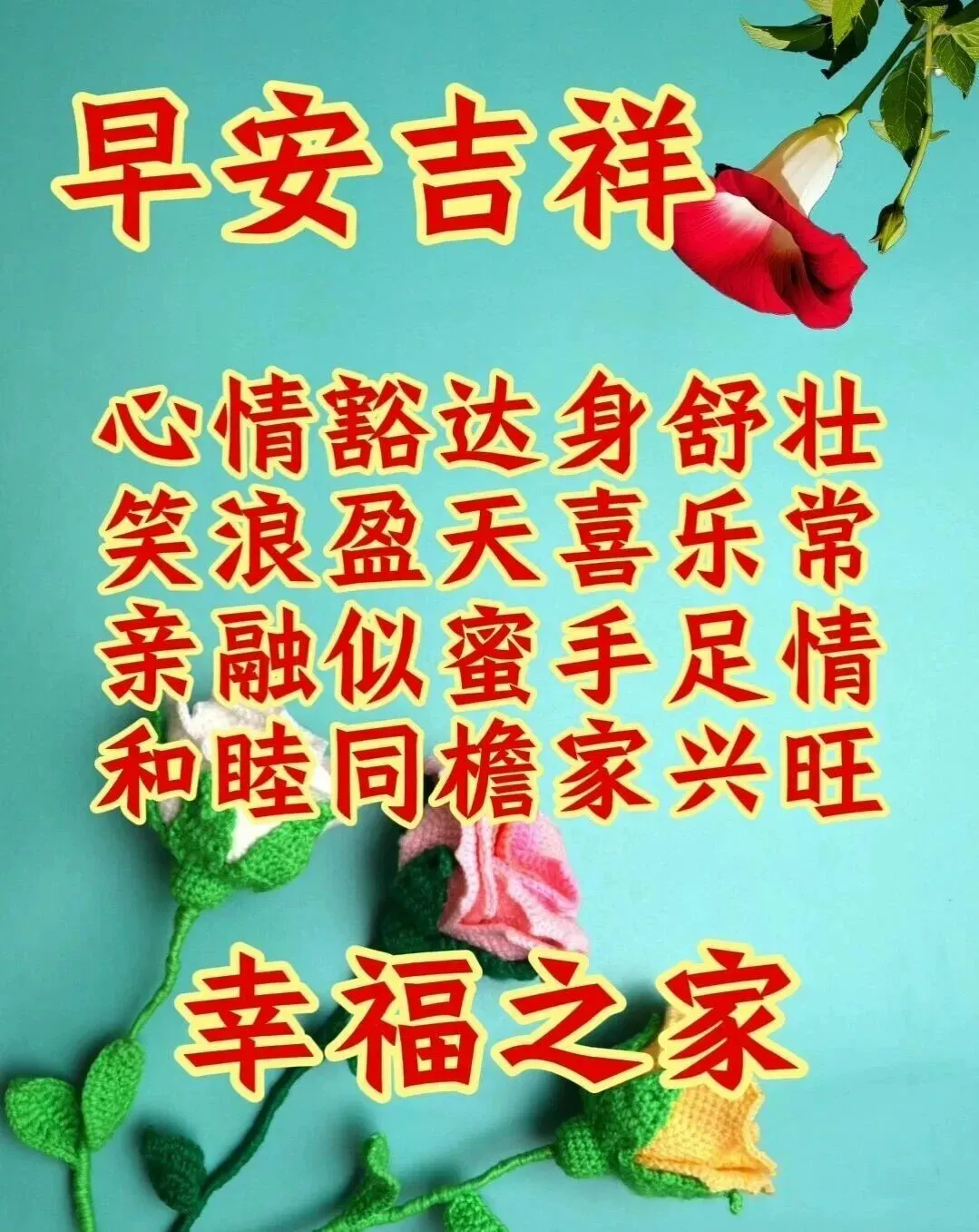 早睡早起要记牢,锻炼身体常伸腰;饮食清淡营养高,血压血糖都不飘;有空多把步来跑,健康快乐永不老。早上好!🌹😊🙏🌺☀️🎉
