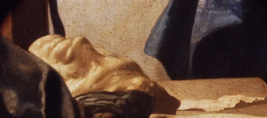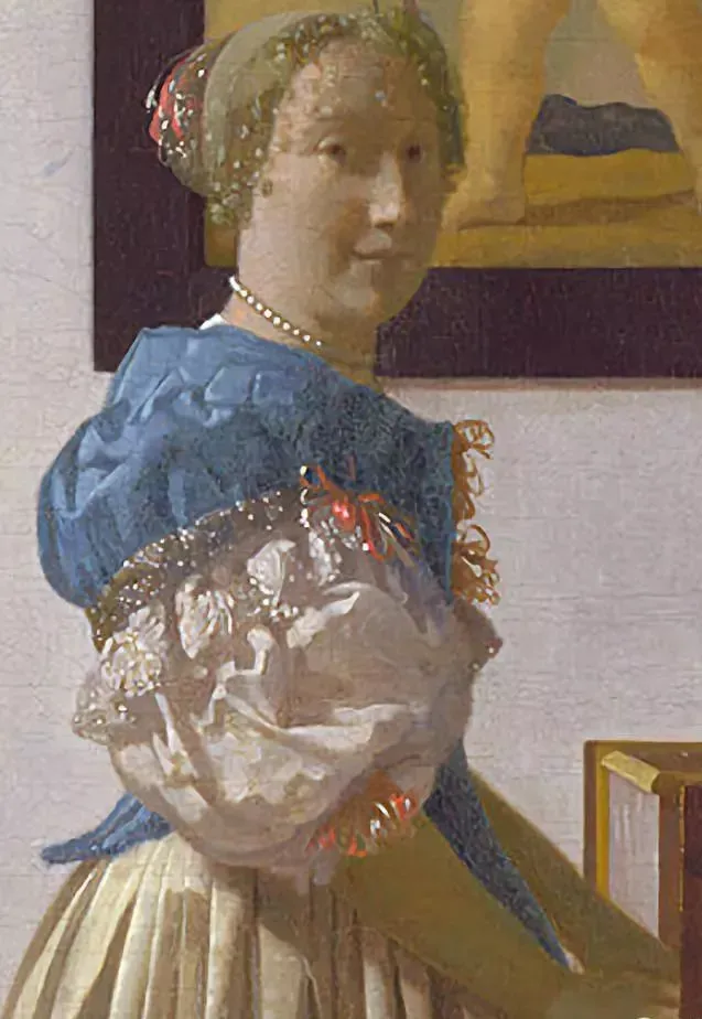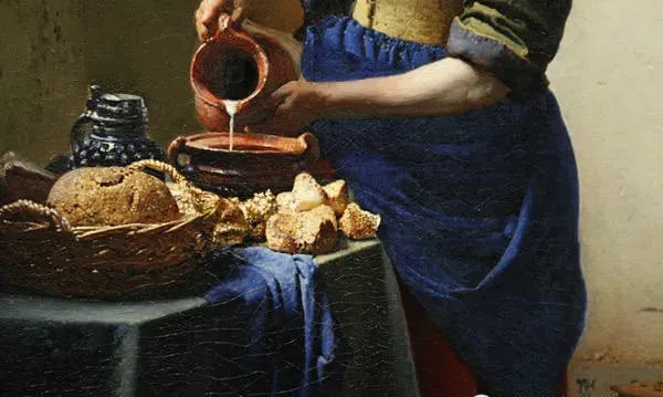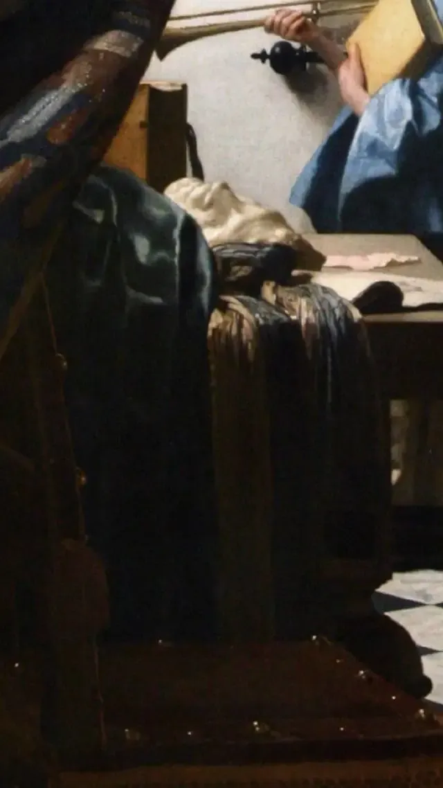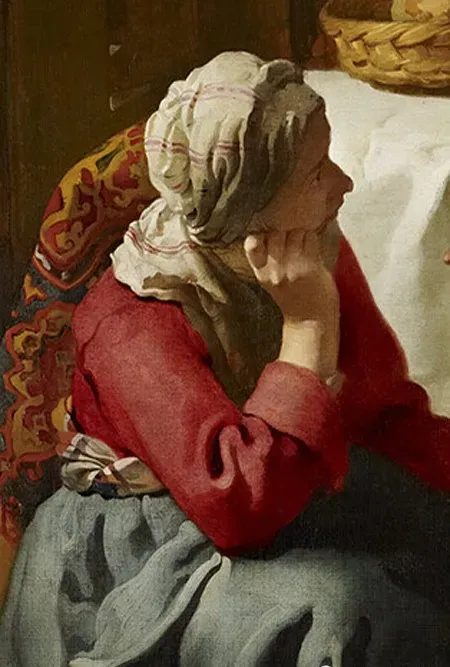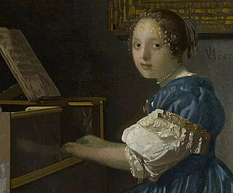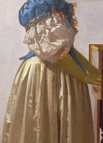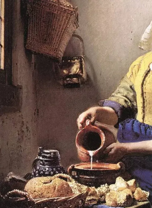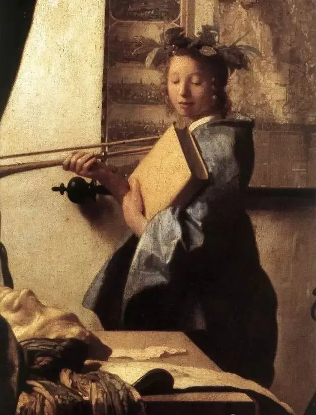 在今天看来,维米尔是一个优秀风俗画家,更多时候也是一个阳光下的抒情诗人。我们揭开那细小的笔触,透过绘画的表面,依然能感受到他内心的“思”。那“思”的轨迹正是画中闪动的光点,在细微处跳动,沉浸在我们的灵魂深处。