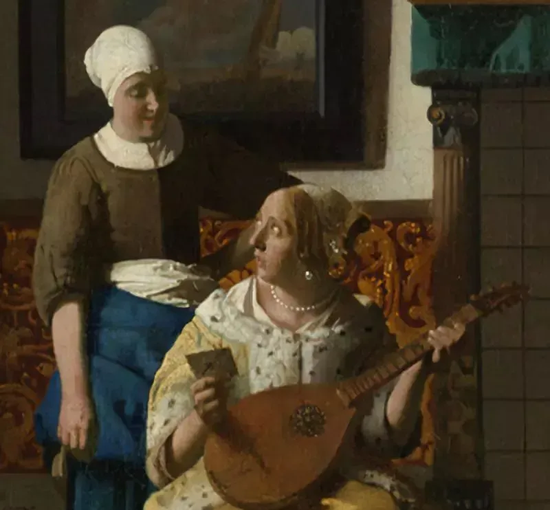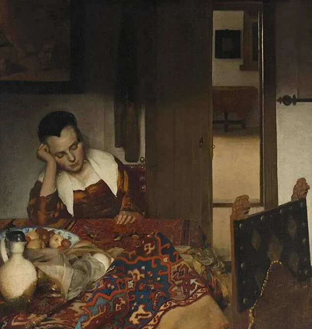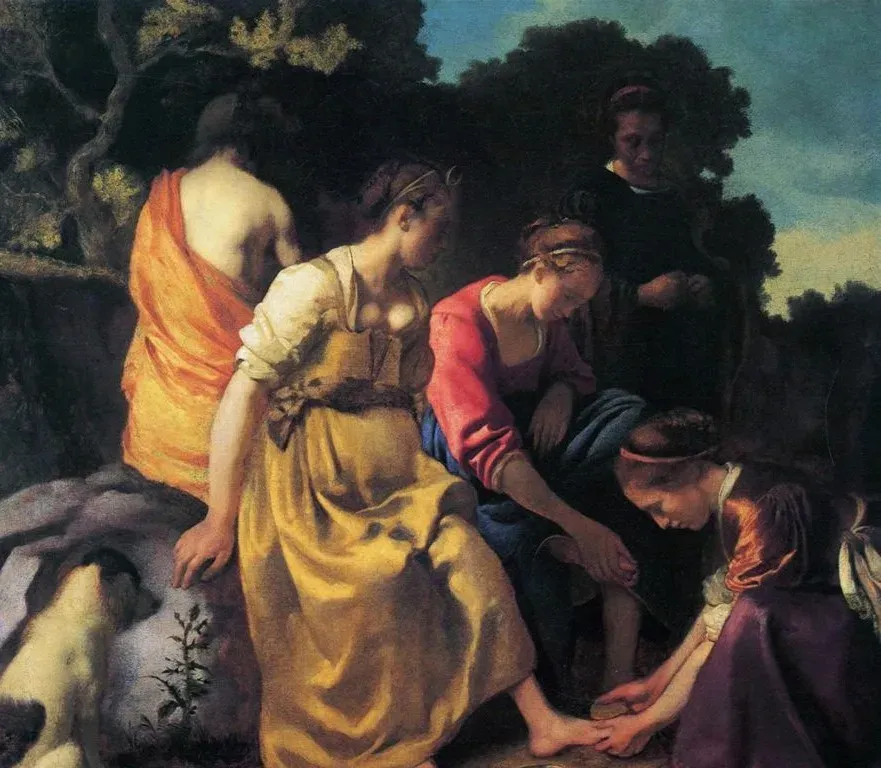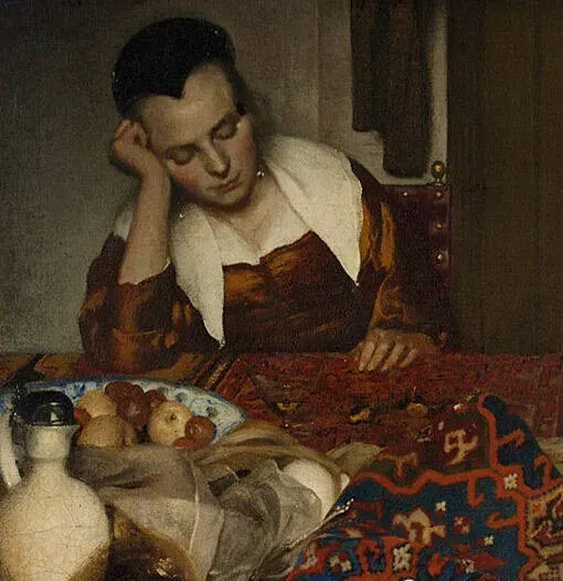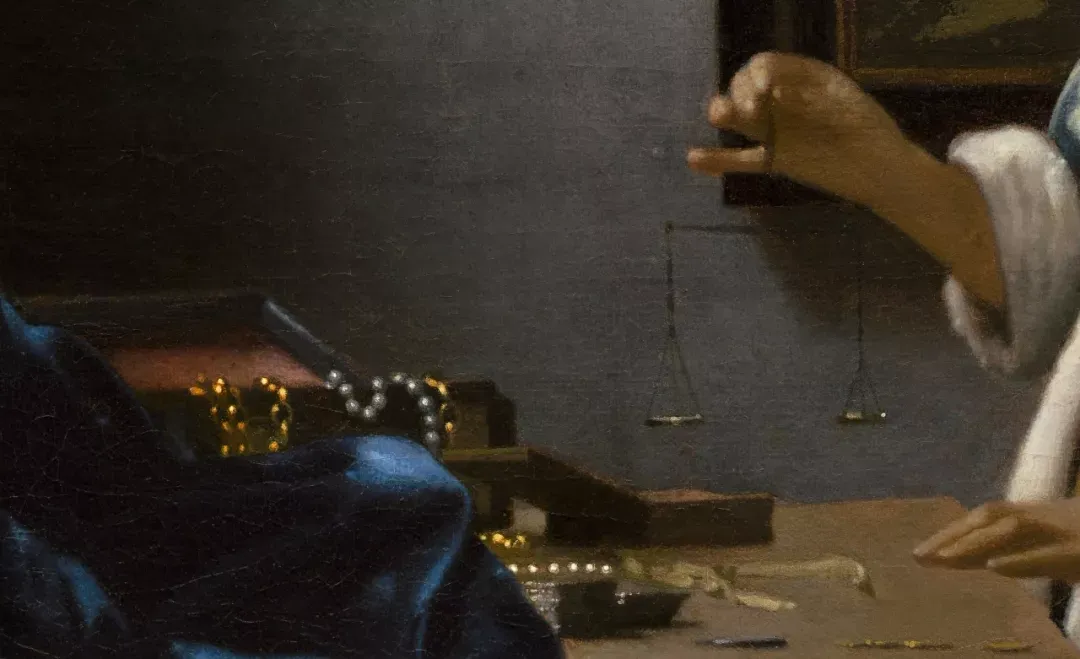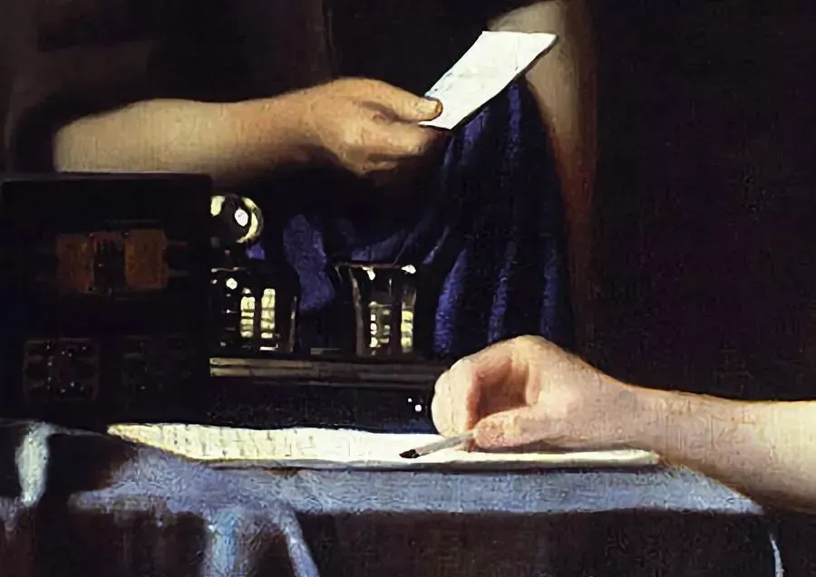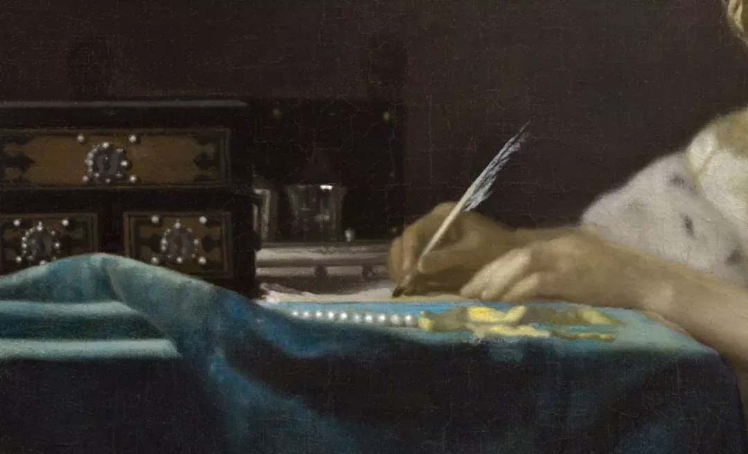 在今天看来,维米尔是一个优秀风俗画家,更多时候也是一个阳光下的抒情诗人。我们揭开那细小的笔触,透过绘画的表面,依然能感受到他内心的“思”。那“思”的轨迹正是画中闪动的光点,在细微处跳动,沉浸在我们的灵魂深处。