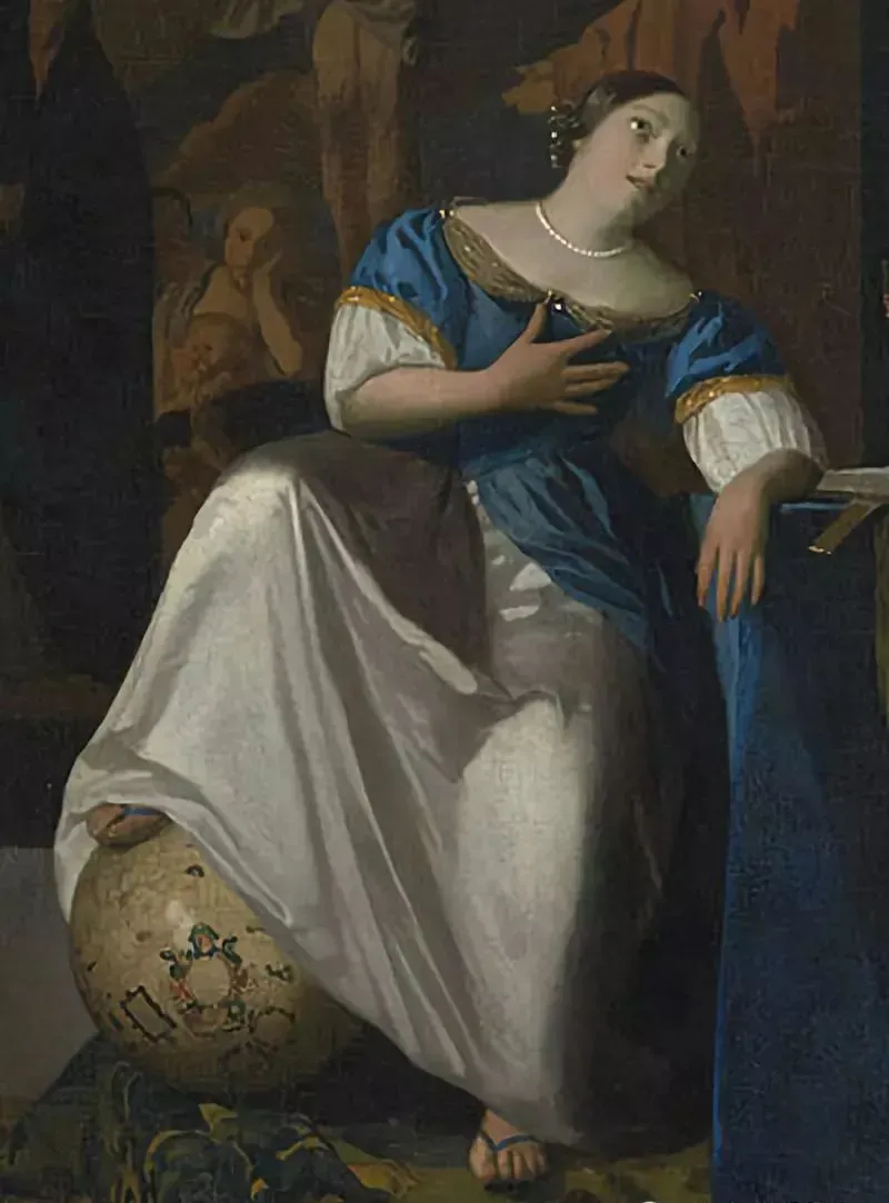 克莱奥手中的书本很厚重,看似一部著名的历史典籍,