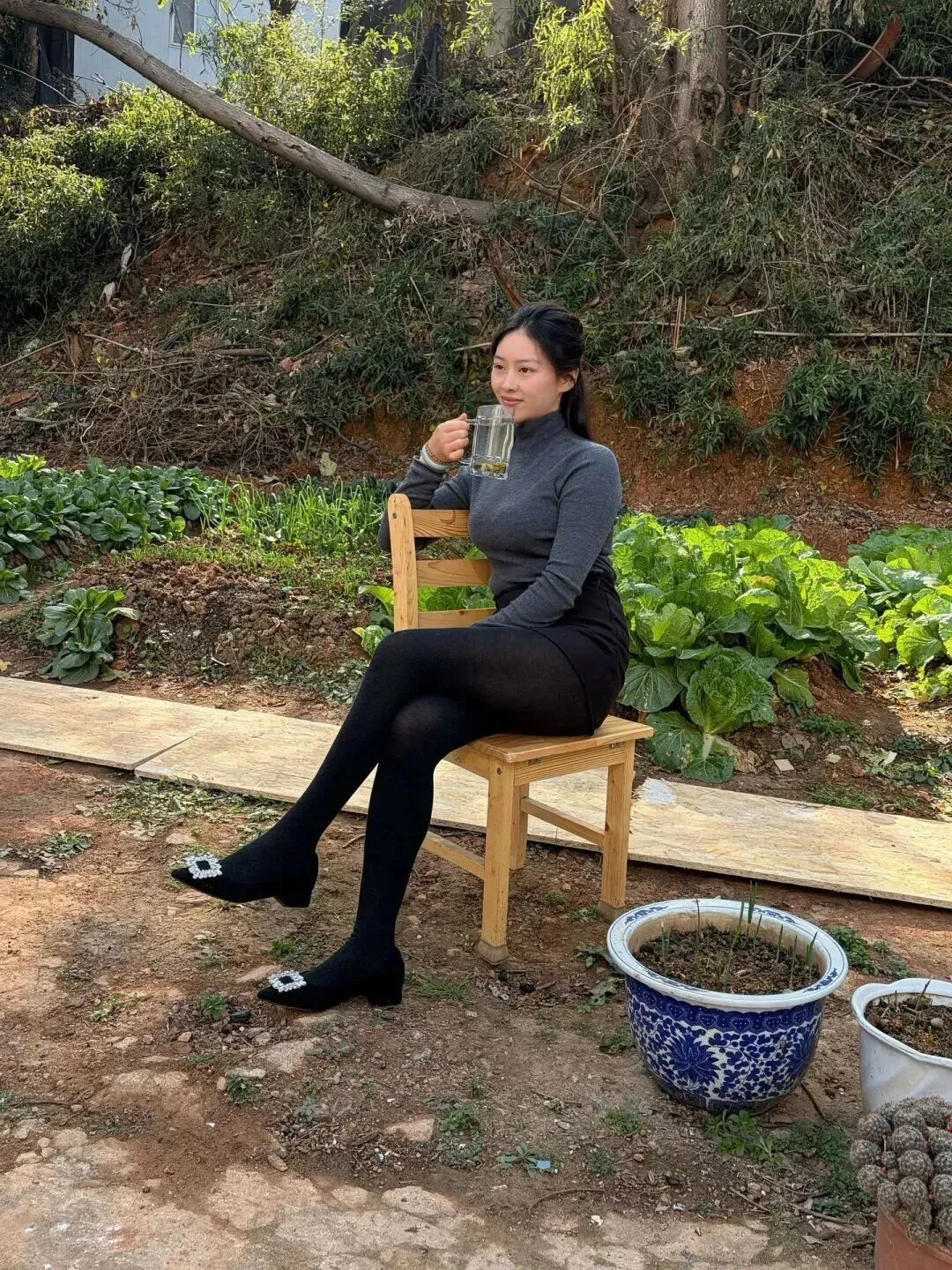 这套穿搭在不同场景下都能发挥魅力。在田园里耕种、劳作的时候,修身剪裁工作方便,不会拖沓。配饰点缀恰到好处,干活也能保持优雅。