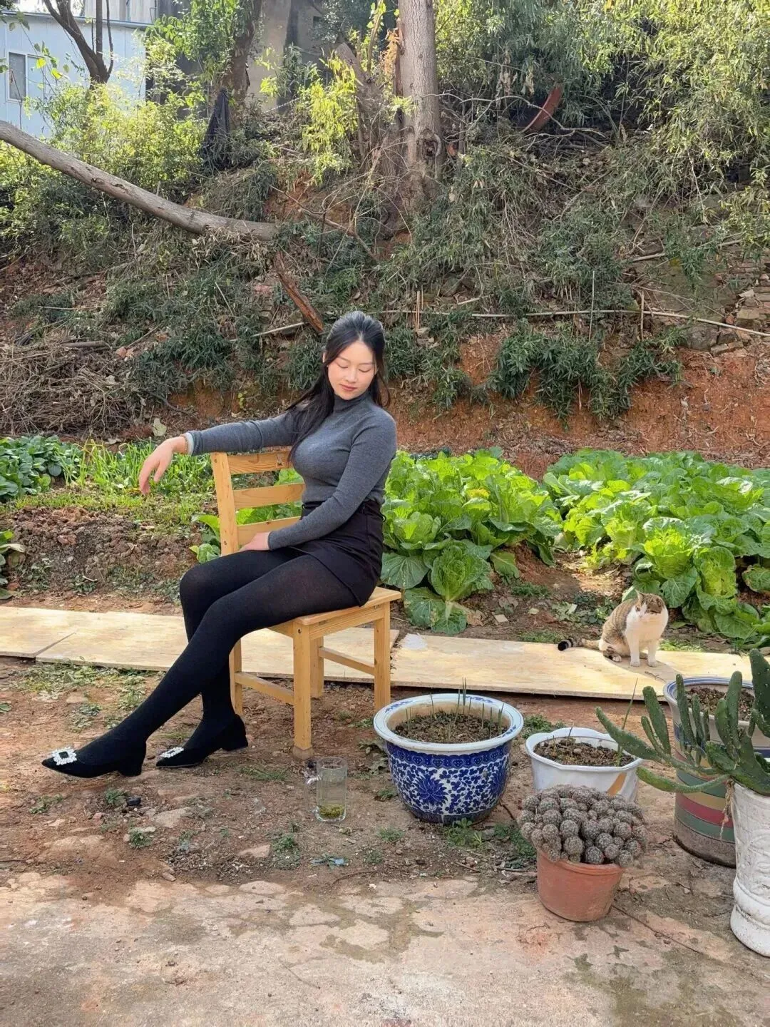 田园里走走散散了头单鞋搭个个交叉站,随性的也优雅的田园里散散步,尖头单鞋搭配交叉站姿,随性又优雅。风吹过来发梢,氛围感就直接拉满。