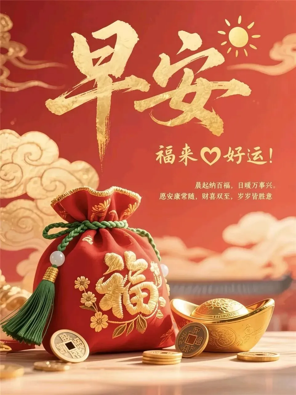 早安,新的一天,新的开始,愿元气满满,幸福安康!不求大富大贵,但愿平安喜乐,万事胜意!