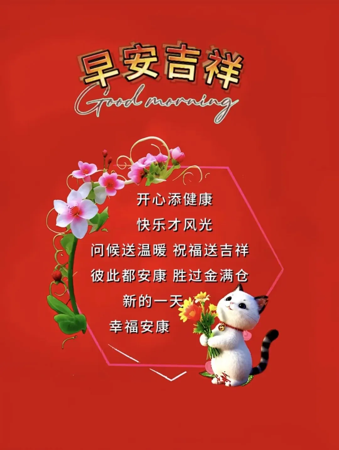 8. 🌷晨曦初照万物复苏,清风送爽心境舒畅✨愿你日子滚烫快乐至上,工作顺利生活美满,家人和睦幸福安康,好运不停歇,早安💐