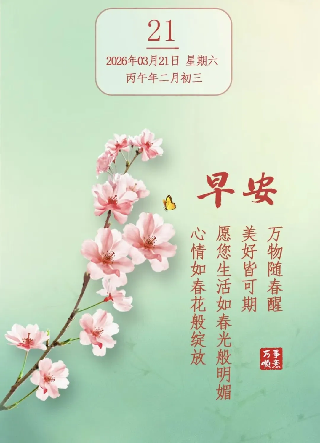 当前位置:首页>美女资讯>3月21日最新早上好图片漂亮祝福,春日早安温馨祝福语,周六早安问候祝福语,春天早上好问候祝福语.