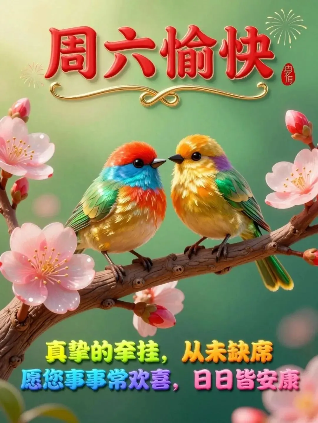 2. 🌿周六早安!春风温柔,阳光正好,美好的周末如约而至。不用匆忙赶路,不用焦虑内耗,听听喜欢的歌,做些让自己开心的小事。愿你在慵懒的时光里,好好宠爱自己,不讨好、不勉强,心情明朗,万事顺心,每一天都温暖又踏实。