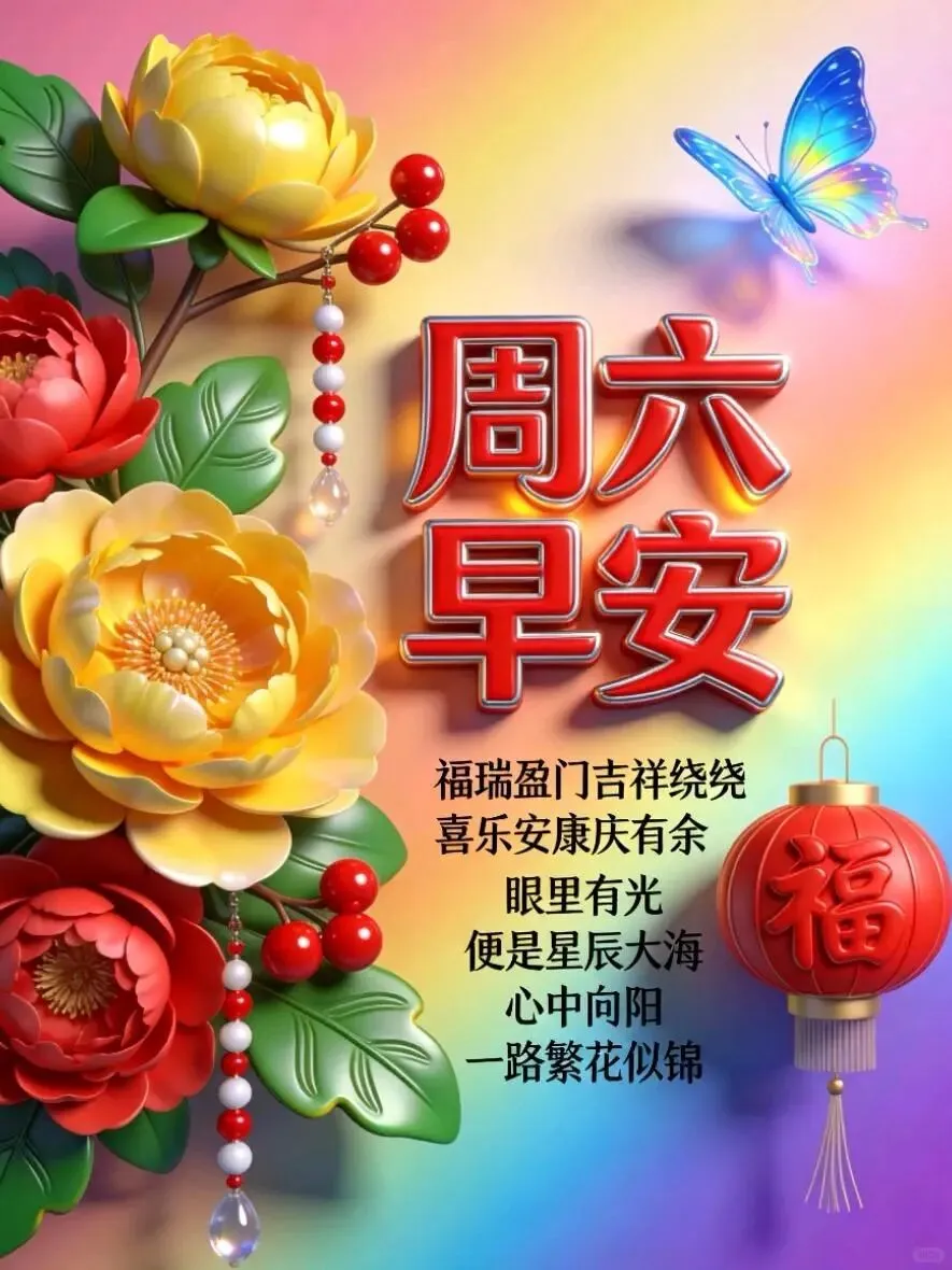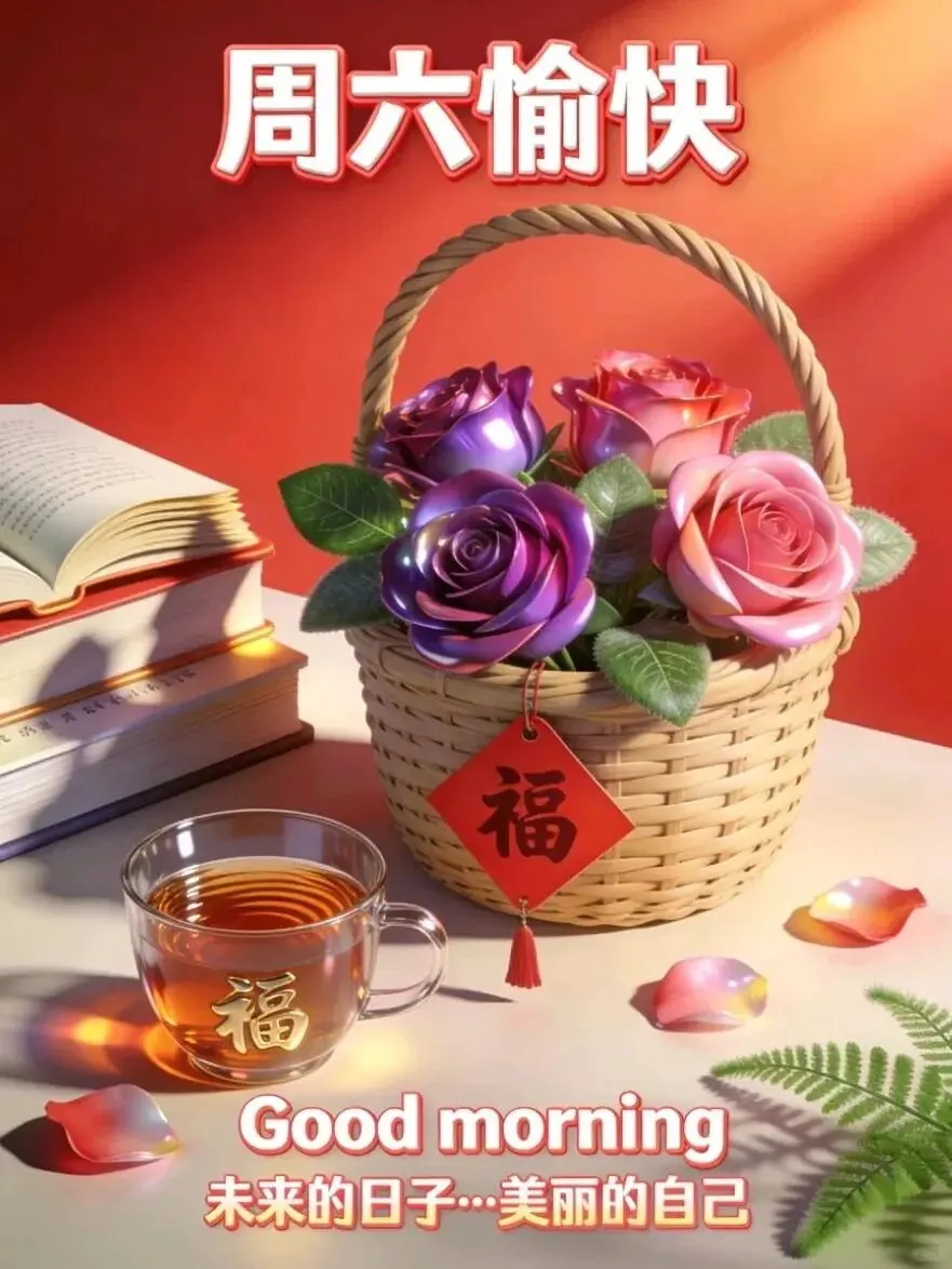 4. ✨周六早安!新的一天,愿你保持从容,保持热爱。不必事事强求,不必人人讨好,用心生活,善待自己。累了就休息,烦了就看淡,把心态放平,把心情放宽。愿你眼里有笑,心中有暖,身体健康,家人安康,一周圆满,周末欢喜。
