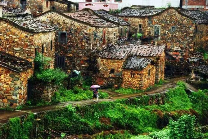 色彩斑斓的石头厝在泉州涂岭镇樟脚村——一个用五彩石头垒成的古老村庄