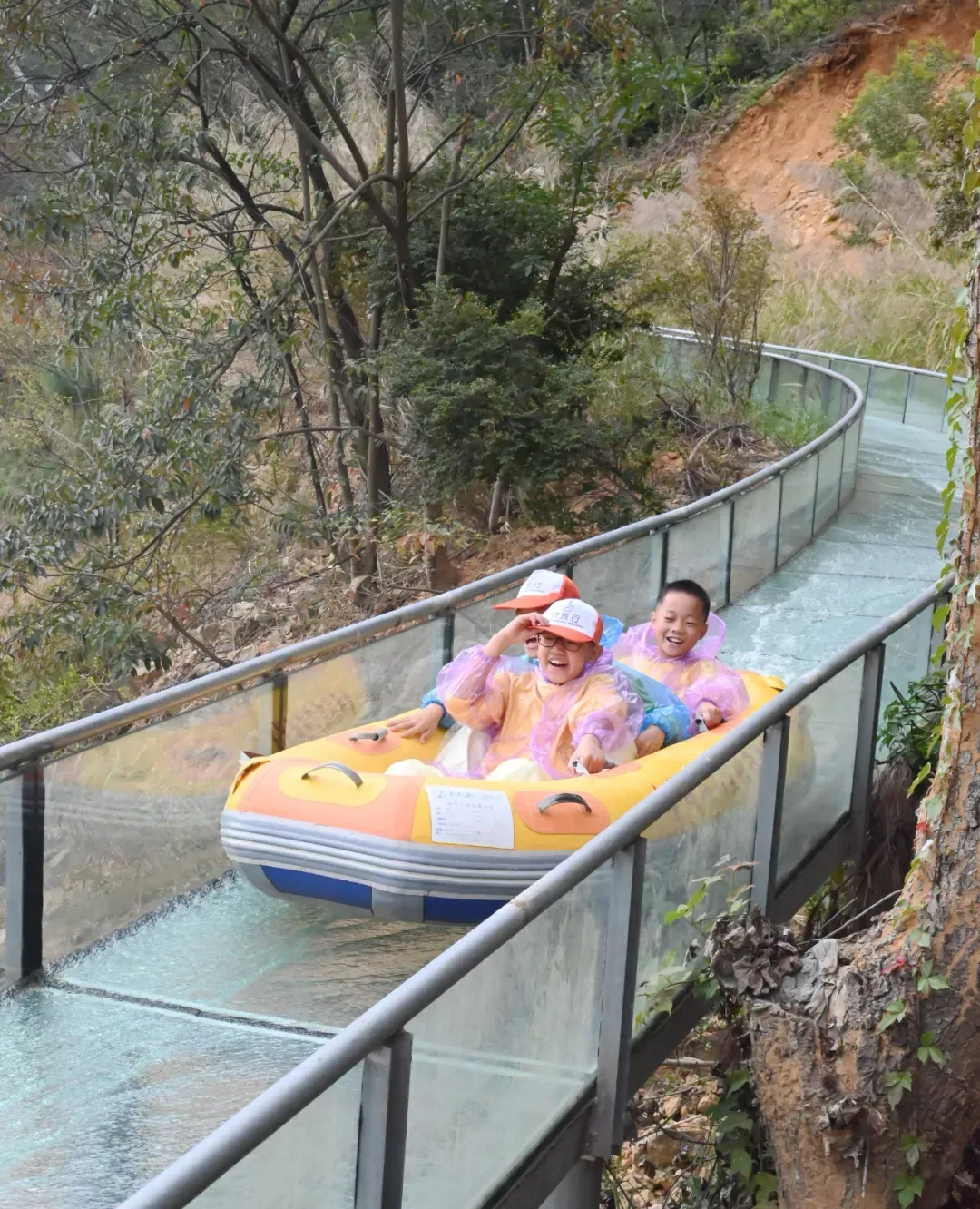 长达1880米的高空漂流,环形而下,如吸水巨龙,承包了整片森林的霸气。全程水花四溅,欢笑声中夹杂着尖叫,畅游在青山绿水间,所有的烦恼都被一扫而光。