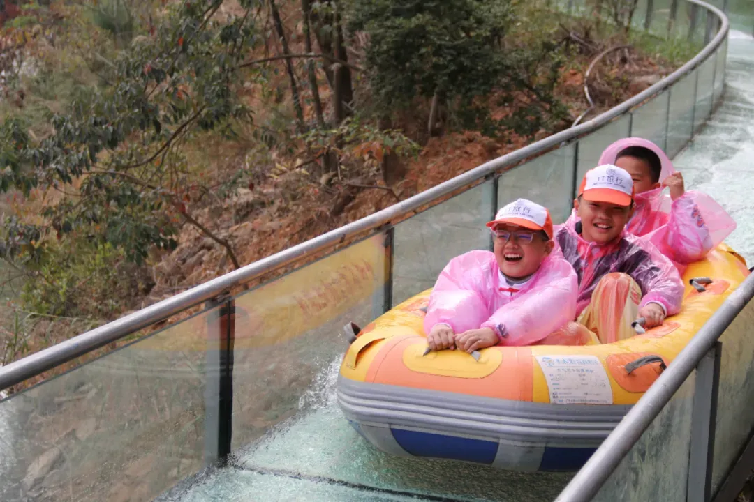 金樟谷森林游乐园,里面有7D玻璃桥-七彩滑道-丛林穿越-丛林魔网-小松鼠部落—高空玻璃水滑道—地龙秋千-划船。