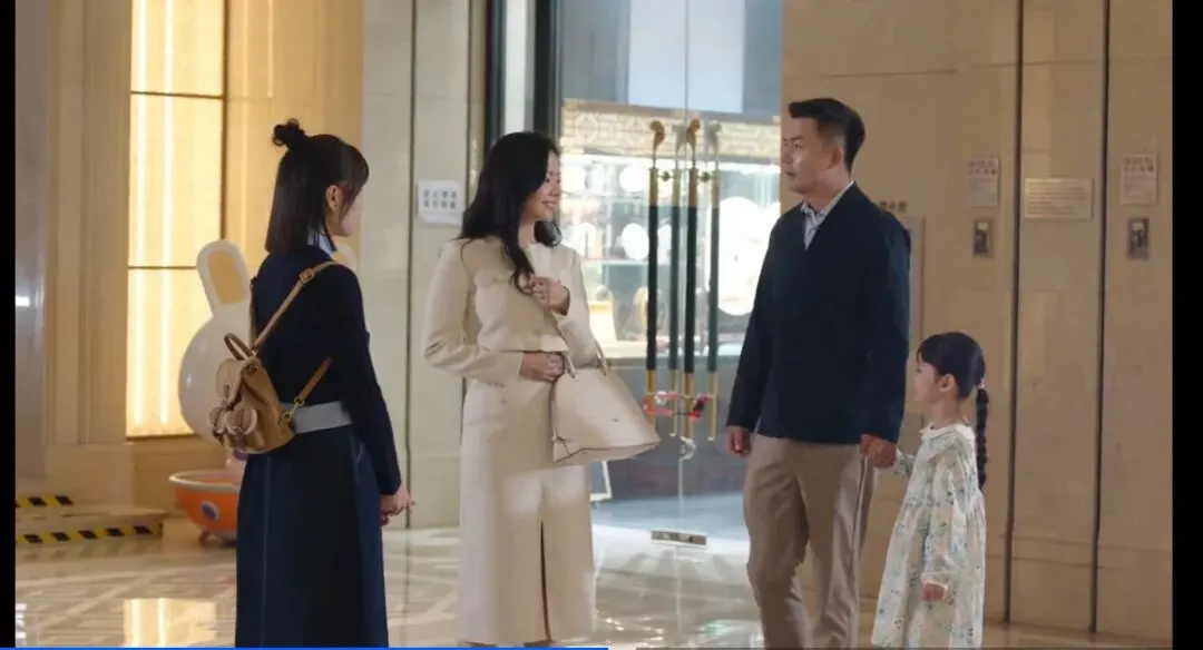 妈妈还没开口,一个男人牵着小女孩走过来。小女孩喊:“妈咪!”