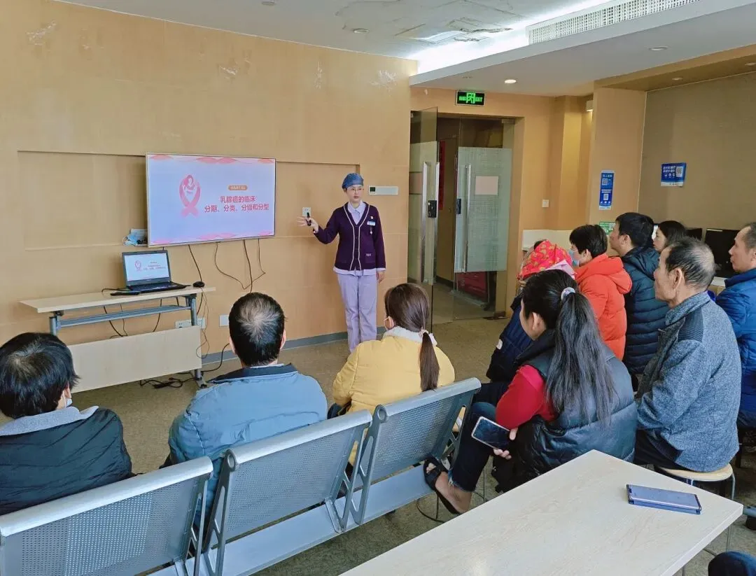 东海院区乳腺外科开展《花影下的真相:乳腺癌诊断的温柔叩问》科普宣教,护士长围绕女性最关心的乳腺健康话题从日常自检要点、乳房异常信号识别,到各类影像学检查适用场景,再到病理活检“金标准”,完整梳理诊断全流程,让专业知识变得易懂好记,帮助女性树立科学的乳腺健康管理理念,掌握守护自身健康的“主动权”。