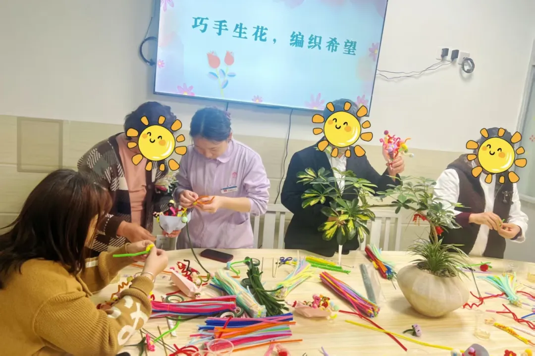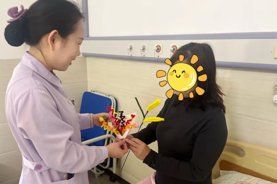 为让住院的病友感受到节日的温暖,鲤城院区29区妇科护理团队策划了书香愈心灵,巧手绽芳华惠世书享荟。护理姐妹们化身领读人,分享《此生未完成》、《活好》等书籍的感悟,用文字的力量鼓励大家。书香氤氲中,大家暂时忘却了病痛,眼神里多了一份理解与鼓励。分享会后,充满乐趣的扭扭棒手工环节让五颜六色的毛绒棒在指尖绽放,变成一朵朵永不凋零的花,编织出大家对未来生活的美好期许。活动尾声,护理人员将制作的花朵送到因治疗无法离开床位的病友手中,让温暖传递到病房的每个角落。