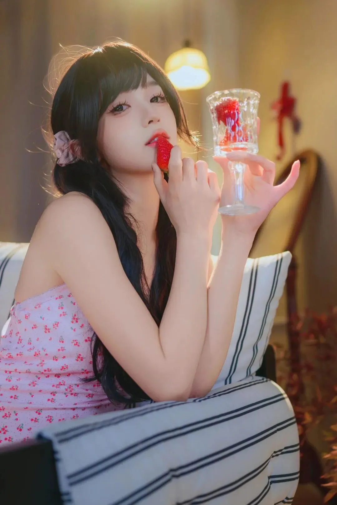 📷暖黄灯光裹着温柔,粉色碎花吊带裙衬得少女眉眼缱绻。蜷坐在条纹沙发上,发间蝴蝶结轻晃,垂眸时的慵懒与松弛,像裹在棉花糖里的晚风,把居家的甜软与治愈感,揉进每一寸光影里。