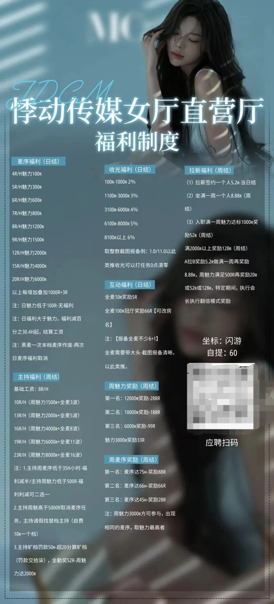 当前位置:首页>美女资讯>悸动传媒招公主/女神/女明星/男女主持/流水模,新人小白也可以管理和小助理手把手教你,福利多多,就等你来!