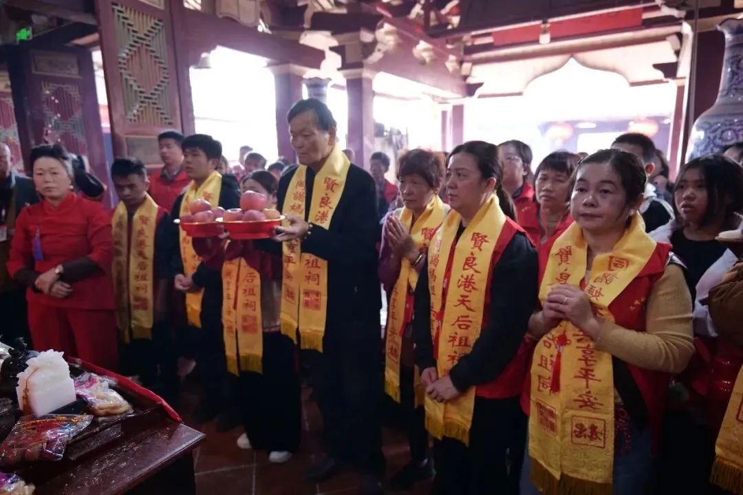 下午3时30分时许,漳州龙海区海澄镇尤墩妈祖宫一行抵达贤良港天后祖祠。祖祠董事长林自弟对进香团的到来表示热烈欢迎,并陪同进香团向妈祖行庄严的三献礼仪式。