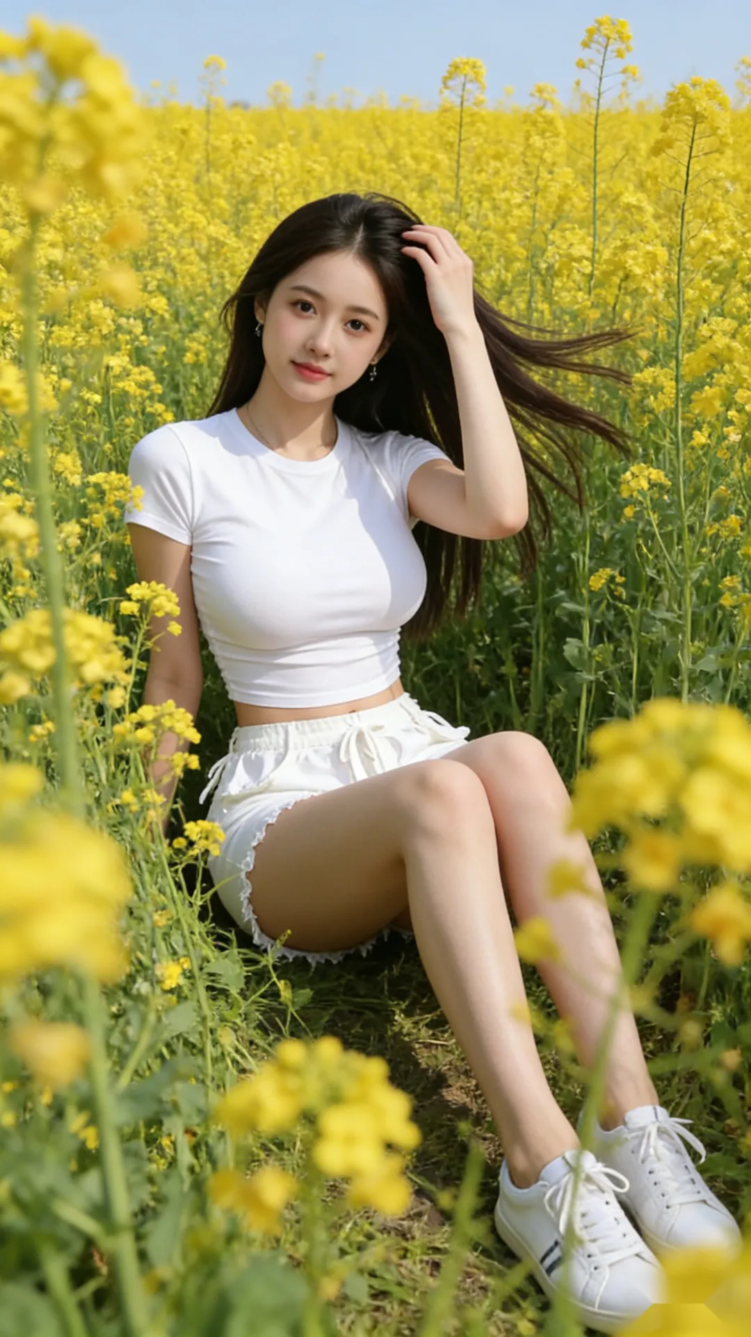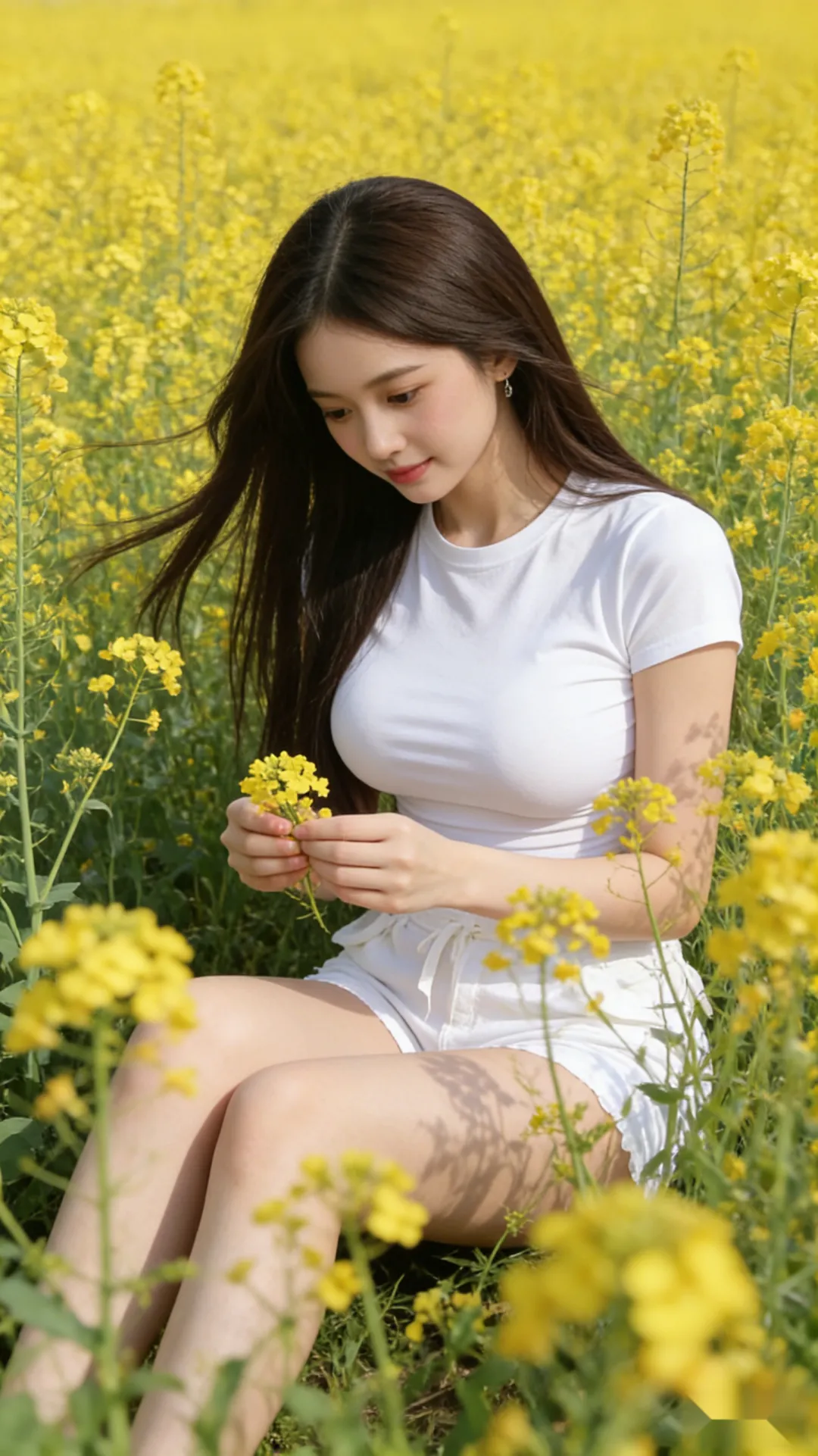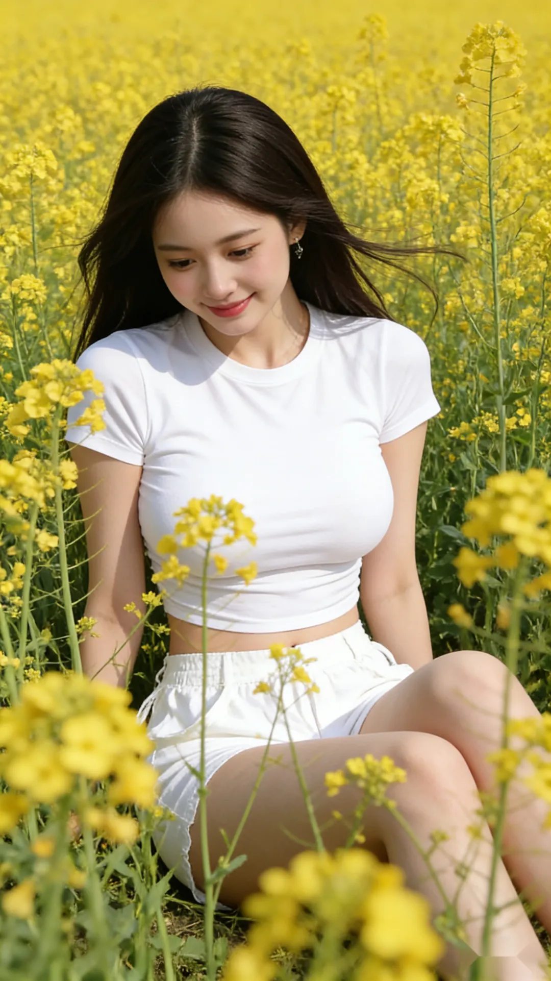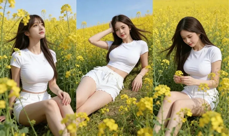 当前位置:首页>美女资讯>白T恤和油菜花好协调,美少女花田春游写真