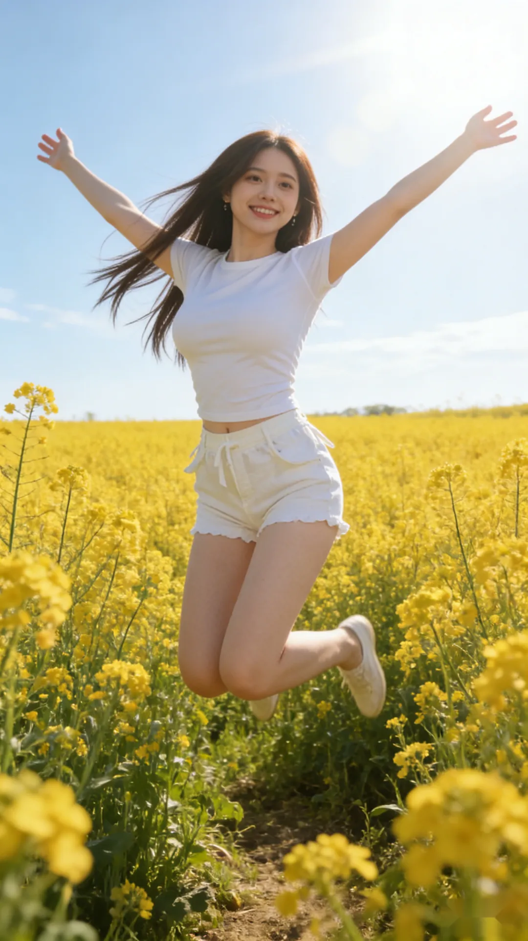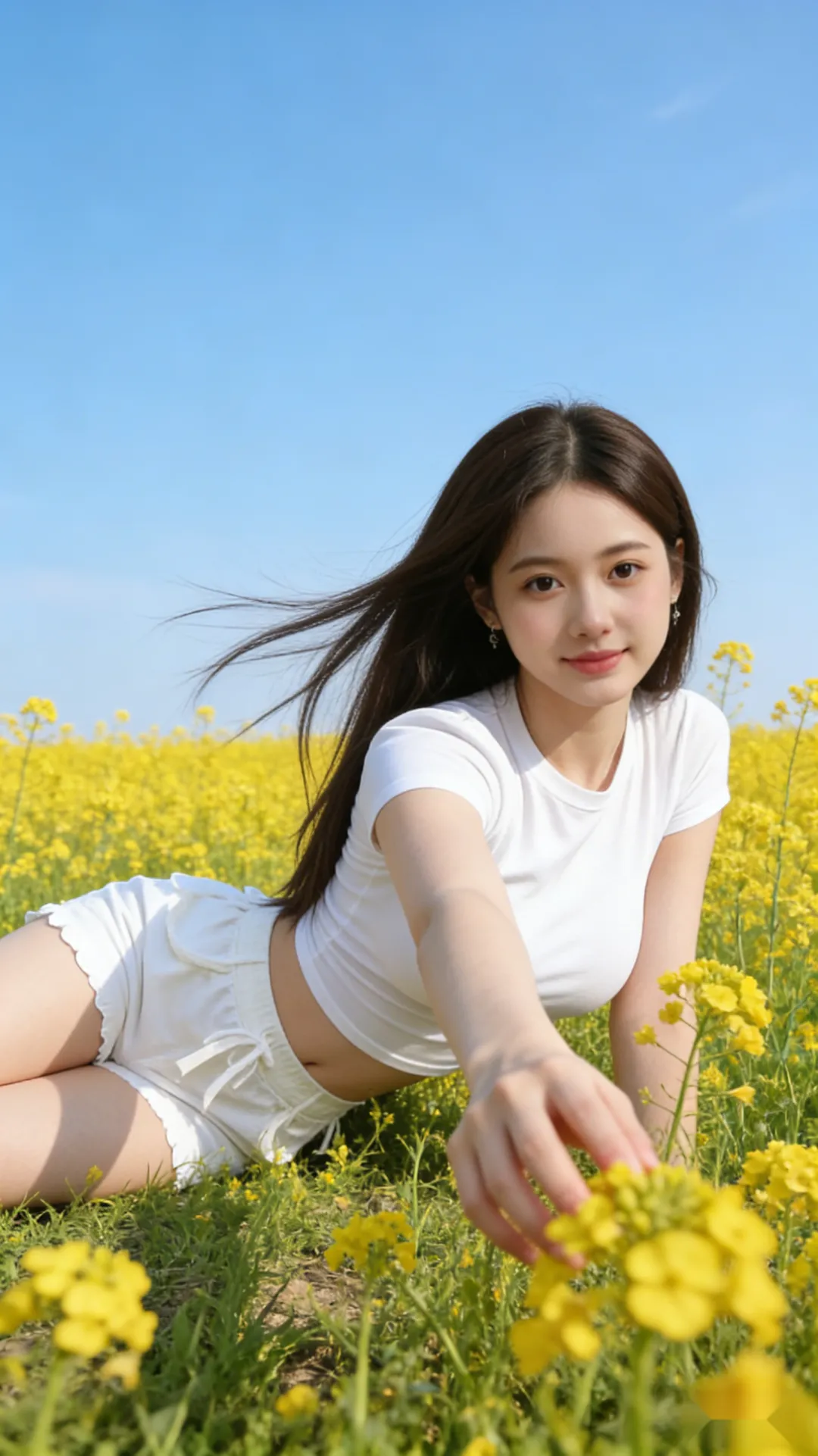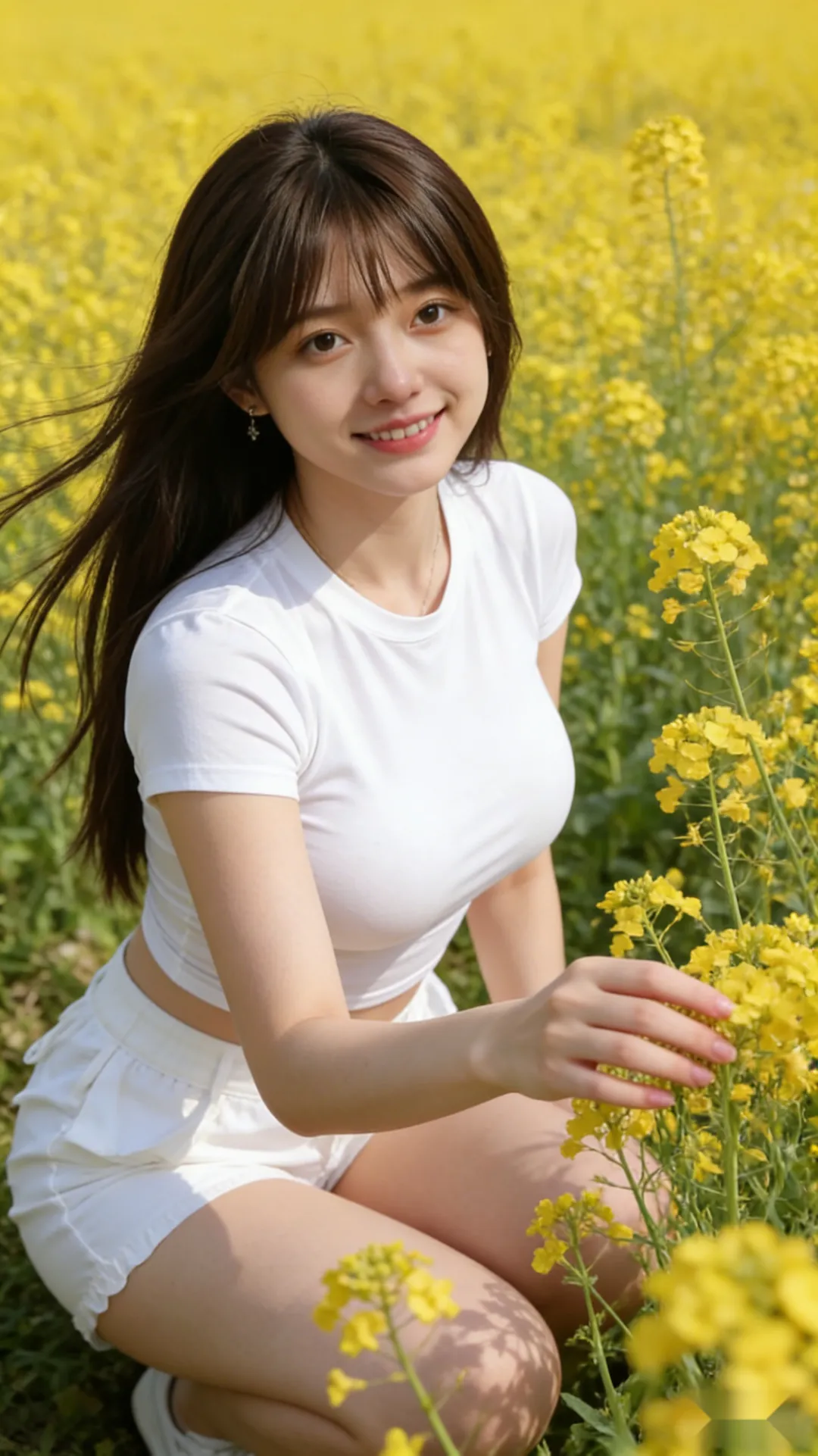 当前位置:首页>美女资讯>白T恤和油菜花好协调,美少女花田春游写真