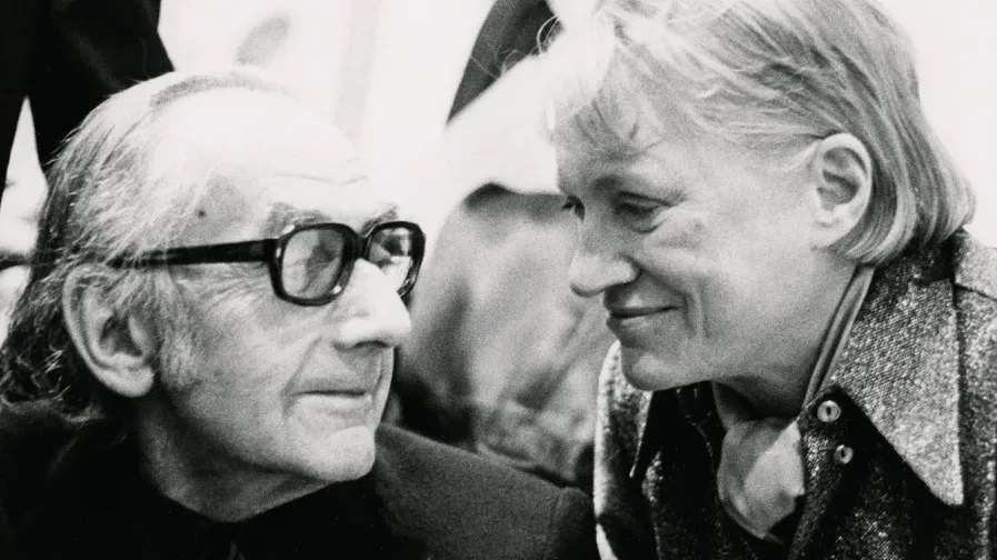 米勒推着轮椅上的曼雷,参加了他生平最后的展览。
