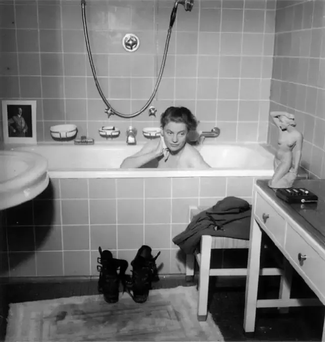 但所有照片中最震撼的,是情人兼战友的谢尔曼,为她拍摄的跳进希特勒浴缸洗澡的反战照片。