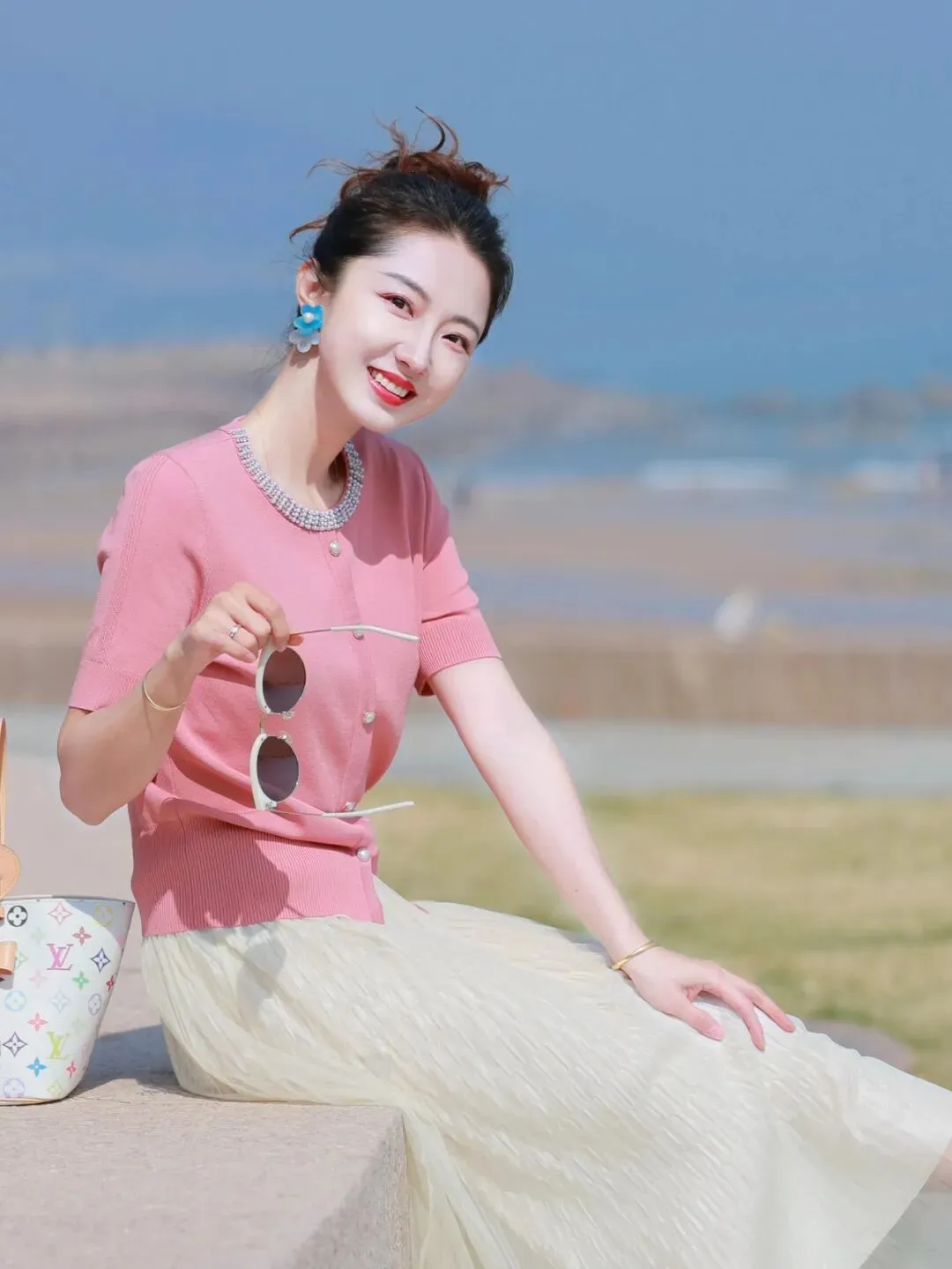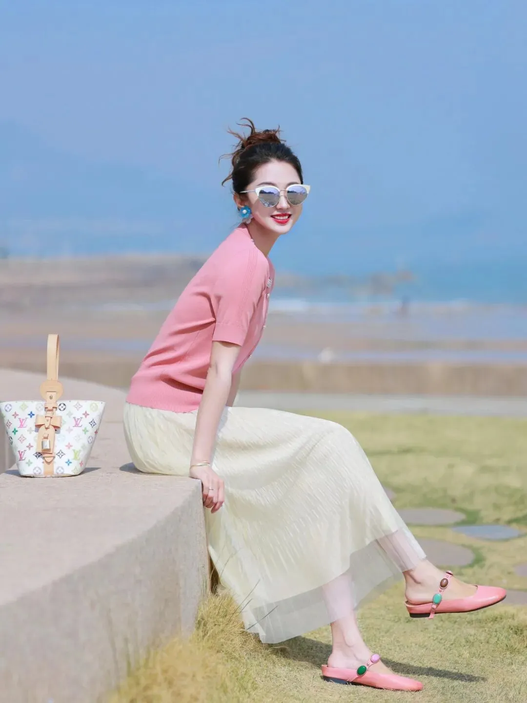 她抬手轻扶墨镜,将目光投向远方。不用直视镜头,反而多了一份清冷和知性。她的笑,是远方最美的风景。