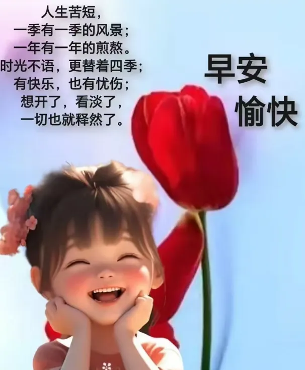 4、 岁月不在长短,快乐开心就好;🌹日子不在多少,幸福安乐就好;🍄距离不在远近,有情有谊就好;🌷生活不在闲忙,没事联络就好。🍄朋友,早上好!