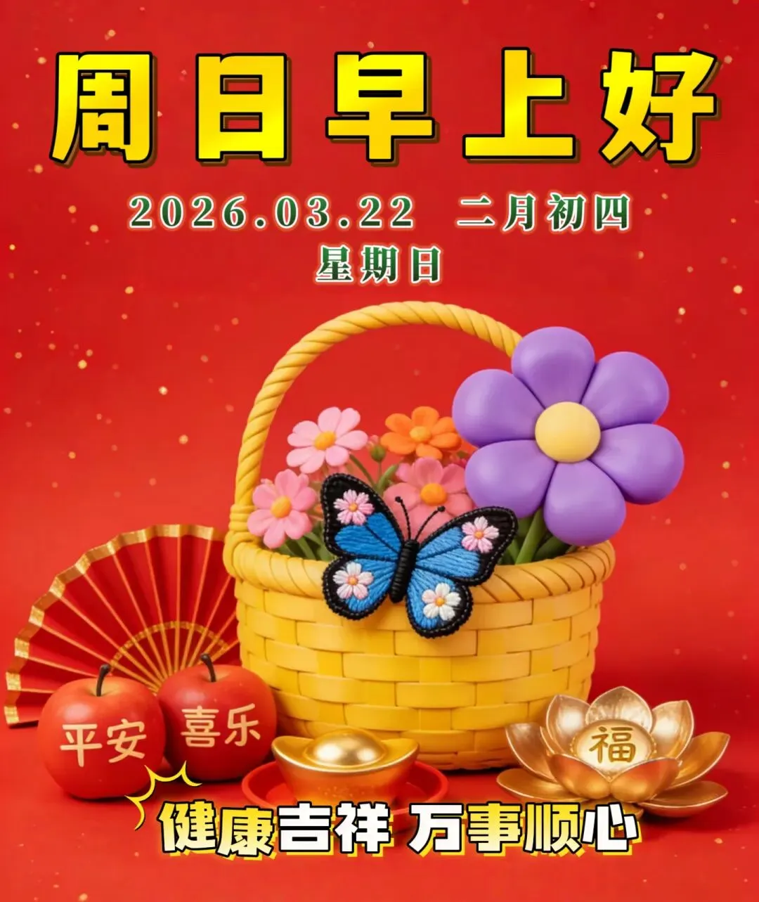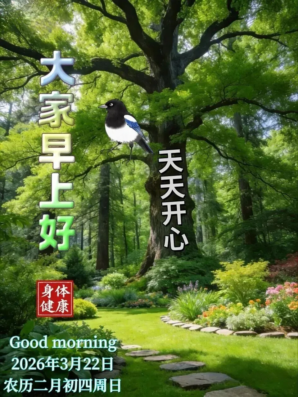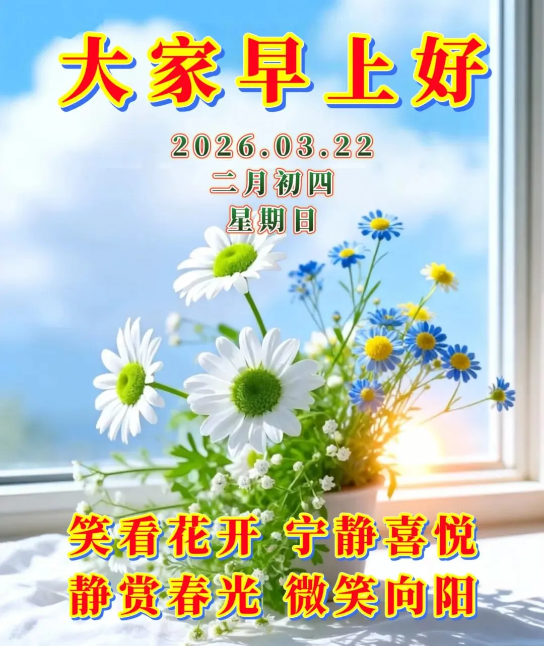 🌈今天是3月22日,💝美好的早晨,洒满阳光;🌞幸福的生活,赠予健康;🌹自然的空气,带来清香;🌷我的问候,为你送上吉祥。🌻周日早上好!🌅