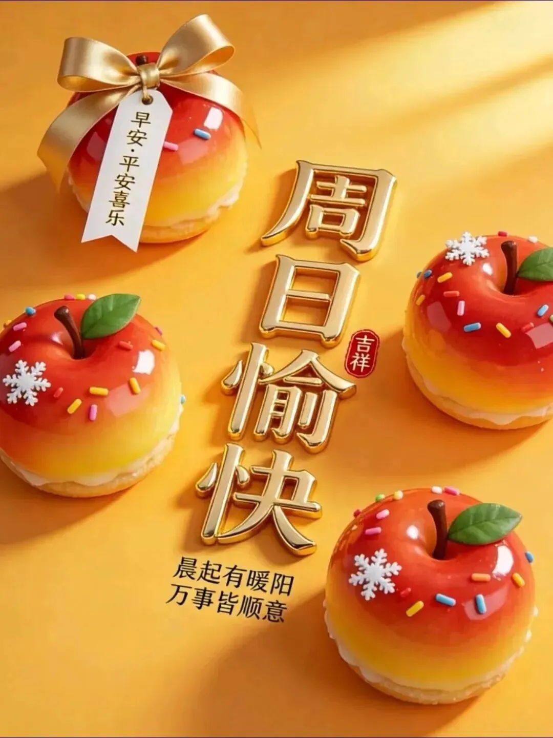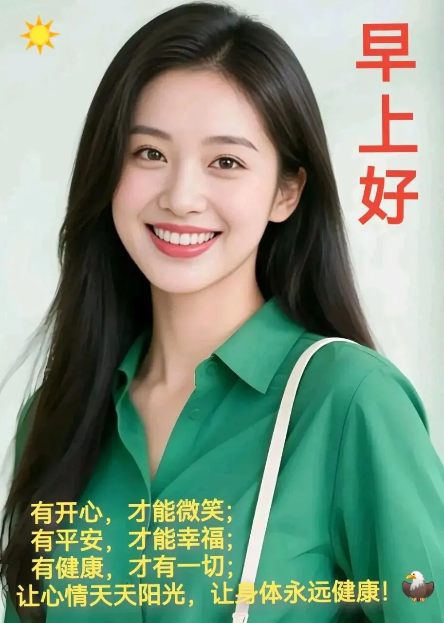 🌞美丽的早晨,灿烂的你,🌻美好的生活在等你!🍎美丽的天气,美好的你,🌺美好的情意滋润你!🌅清新的空气,清晰的你,🍹愉快的心情陪伴你!🎈愿你快乐每一天!🎉