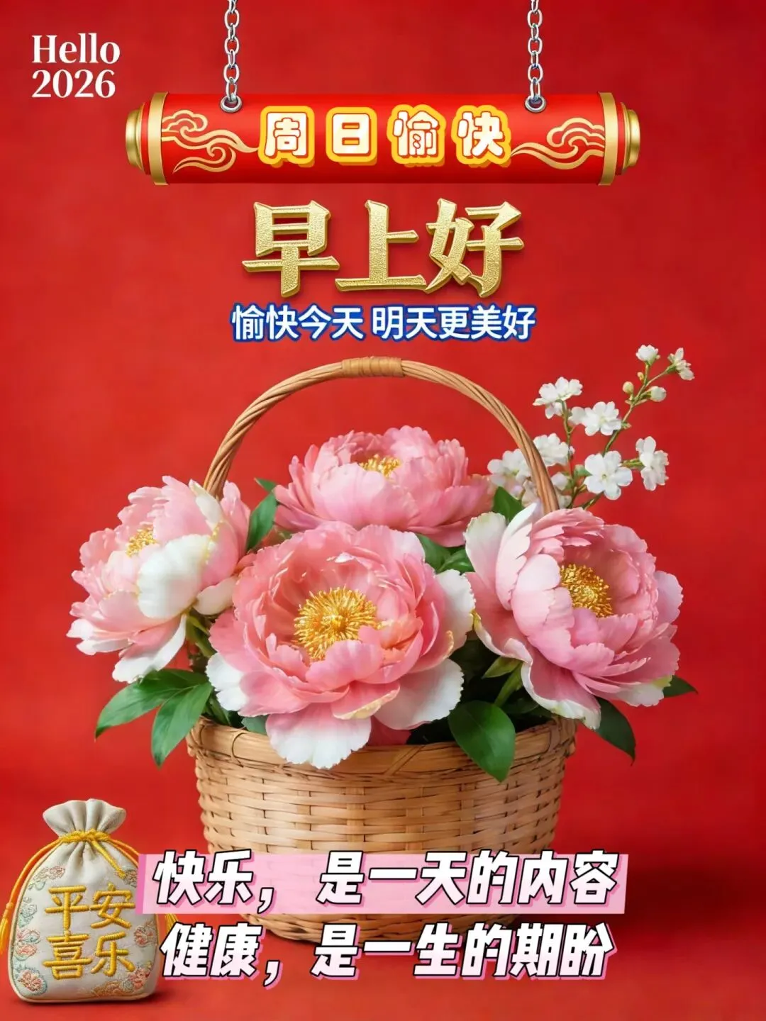 🌈一天一个太阳,🌅点燃新的希望;🌹一天一个梦想,🌷祝你快乐安康;🍁一天一个故事,💐每个都不寻常;💕一天一份祝福,🌻天天心情舒畅!🌞周日早上好!💝