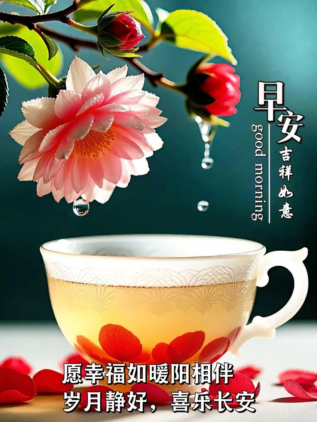 人生过往两杯茶,敬过青春敬晚霞;青春再好成过去,晚霞陪伴度年华;放慢脚步细品味,幸福快乐在当下!早上好!🌹❤️🙂🤝🌺🎉