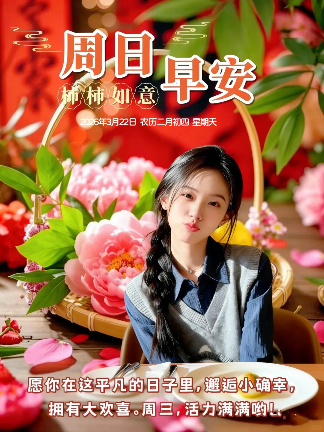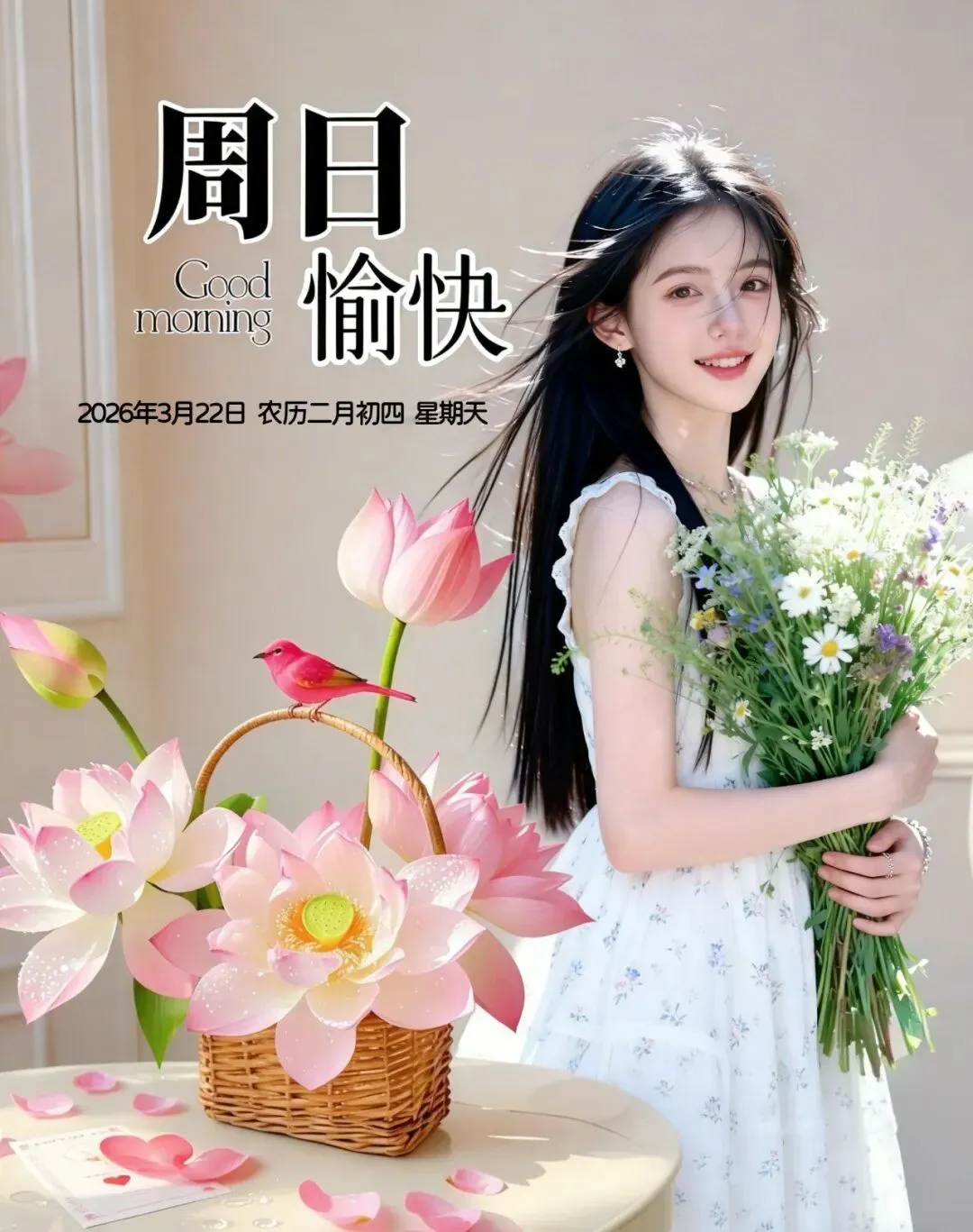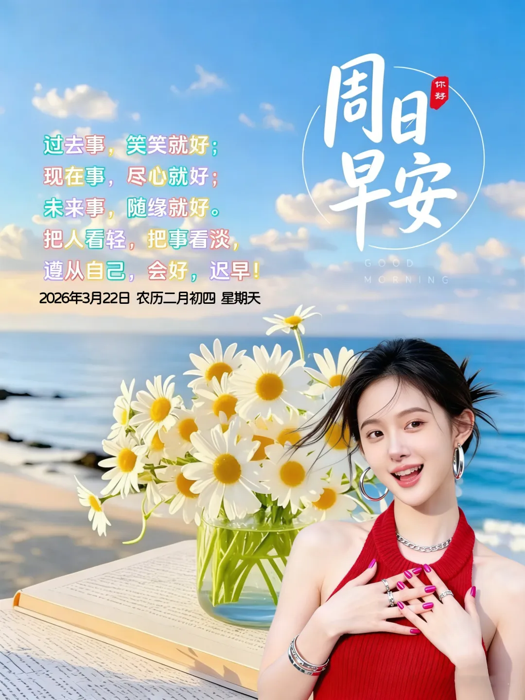 3月22日-星期天美女早安图片 周日早安祝福图片