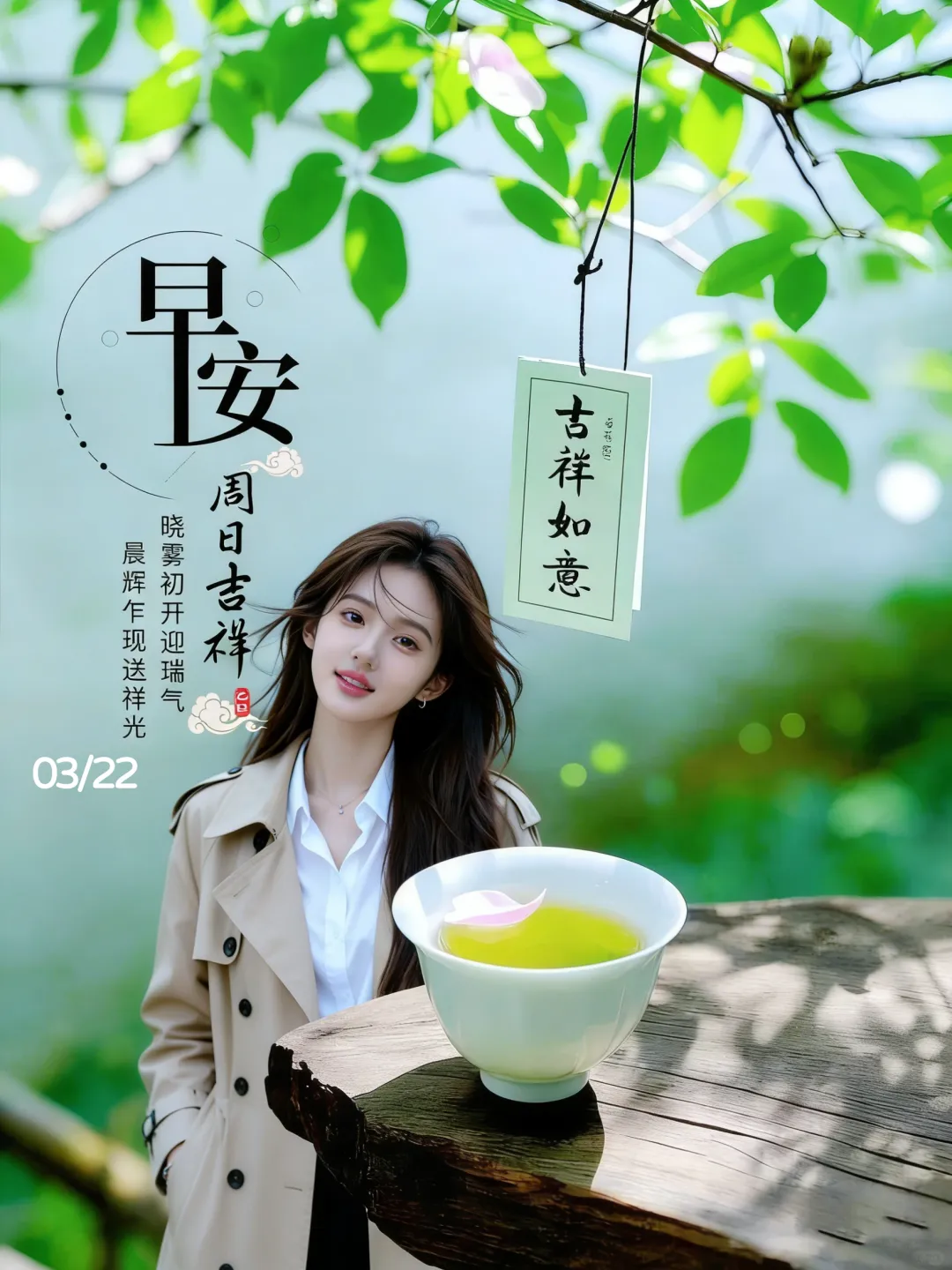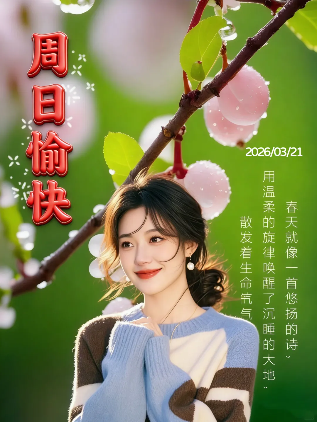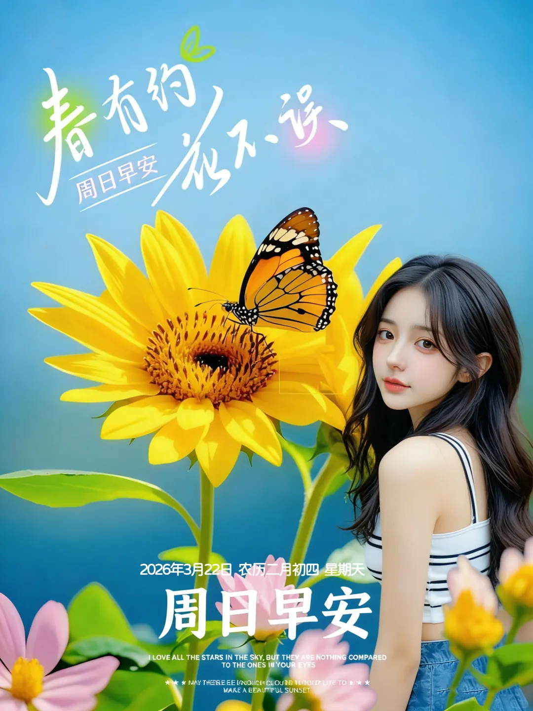 3月22日-星期天美女早安图片 周日早安祝福图片