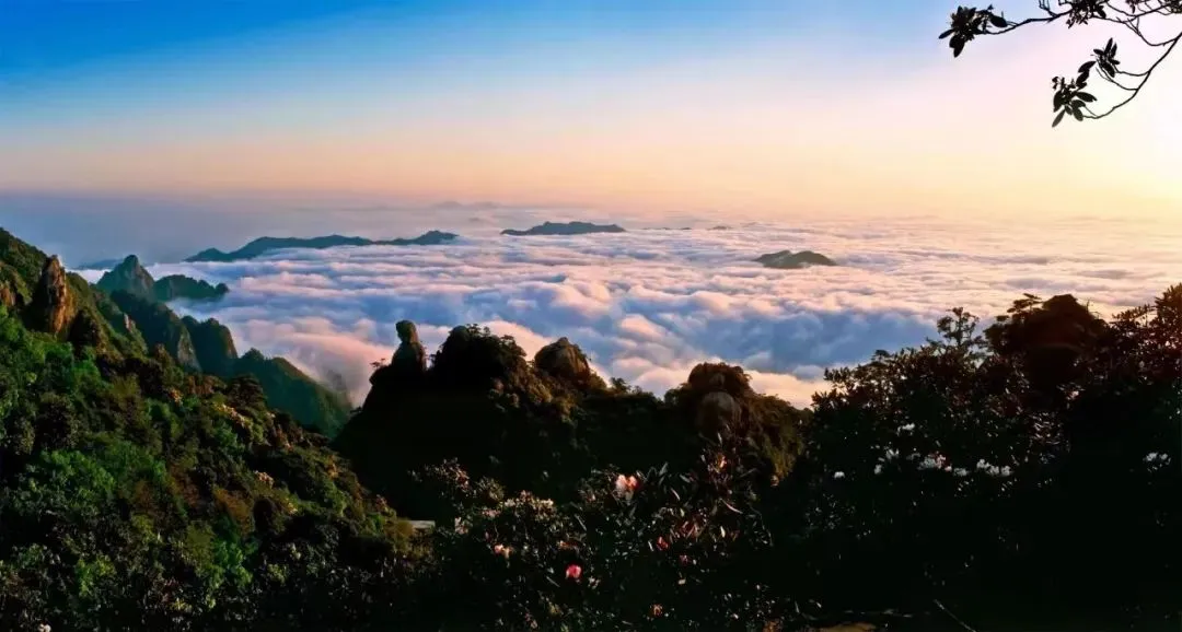 春季有漫山开放的高山杜鹃,多云雾笼罩;
