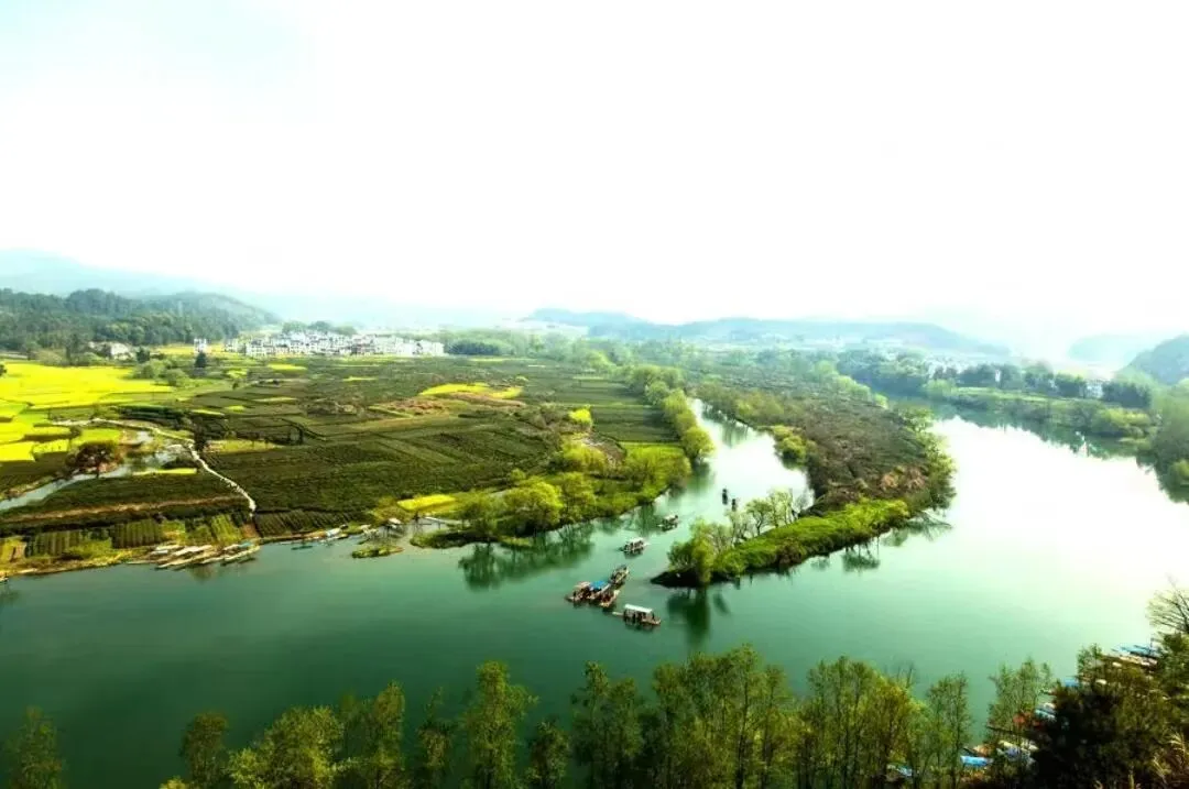月亮湾因恰 如月亮的形态、隔岸徽派民居的典雅、周边秀美的景色相融合。
