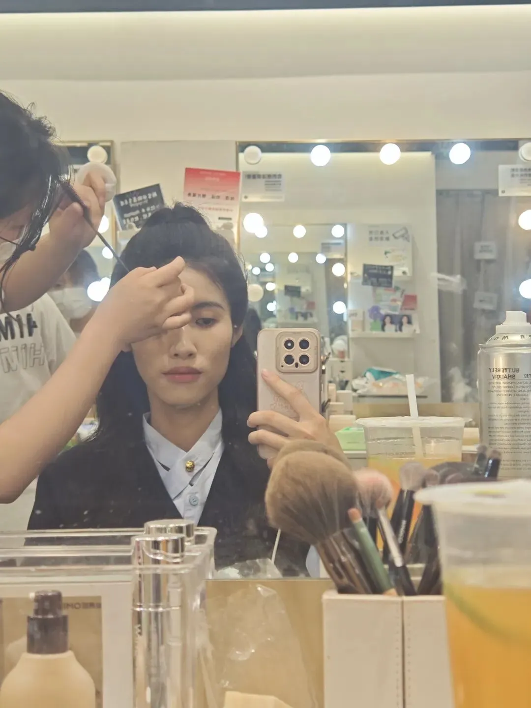 可真正体验下来,还是比较辛苦的,比较考验耐心和定力。从早10点到晚11点,我几乎全程坐在没有任何倚靠的凳子上,屁股坐到发麻,肩背也特别累。因为需要你一直坐着,根据督导反馈,小姐姐来反复调整妆容和造型。