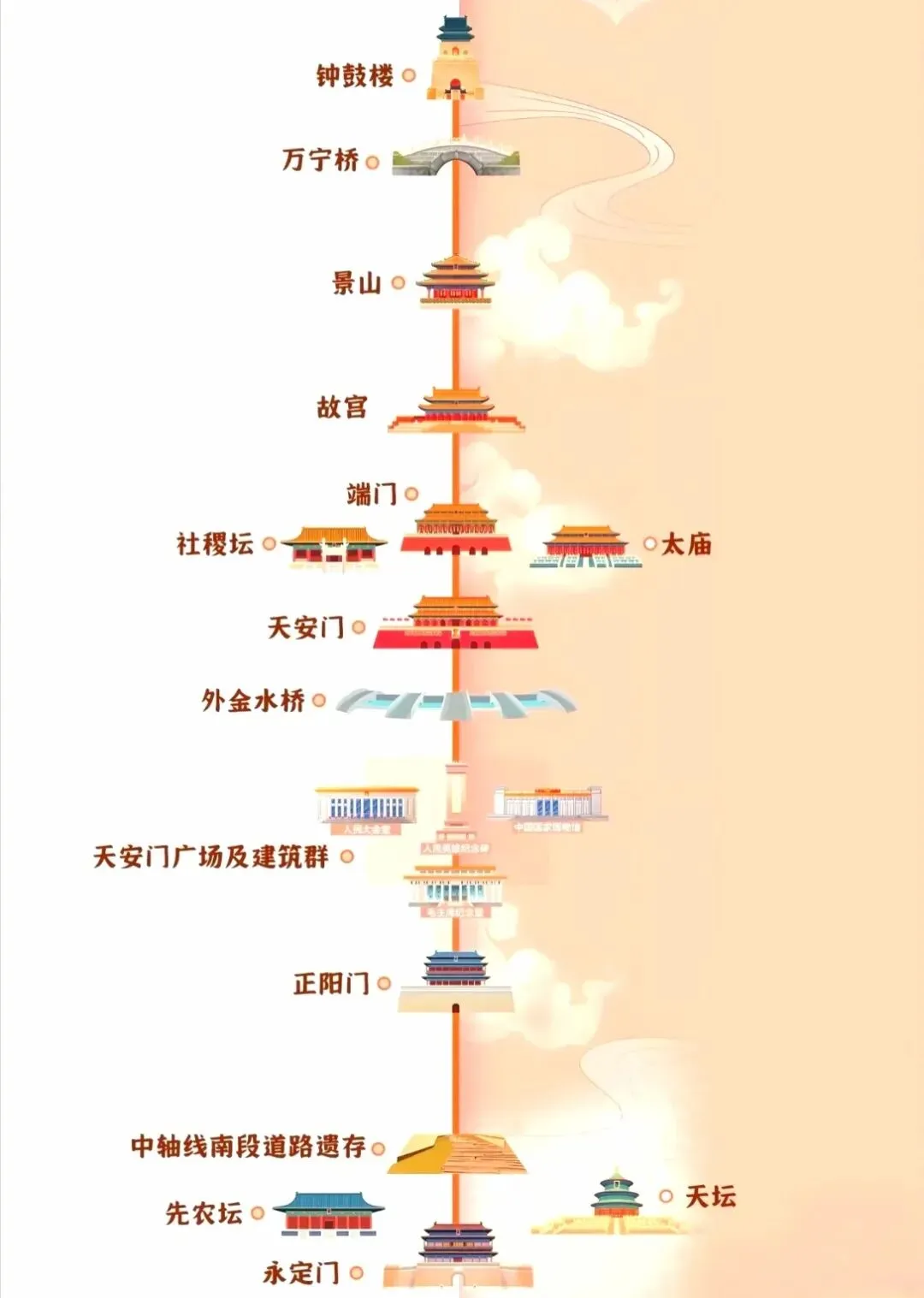 北京“中轴线”申遗成功了。2024年7月27日,在印度新德里召开的联合国教科文组织第46届世界遗产大会通过决议,将"北京中轴线﹣﹣中国理想都城秩序的杰作"列入《世界遗产名录》。