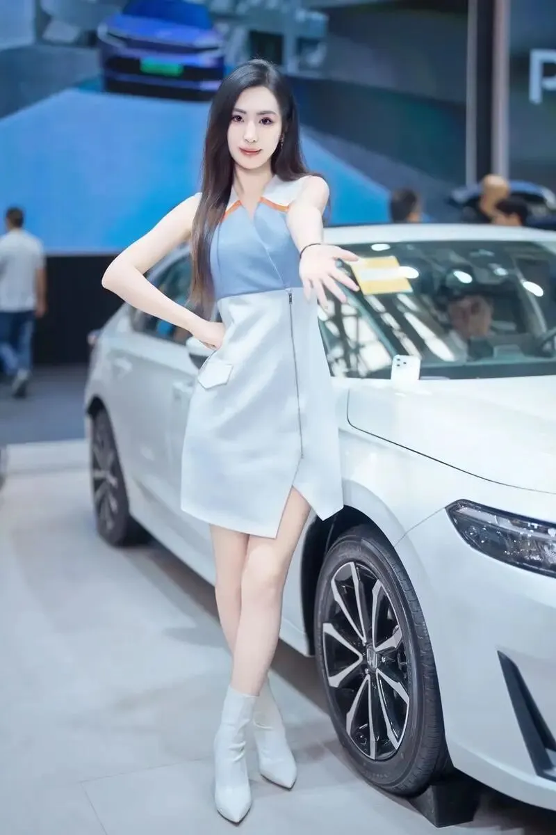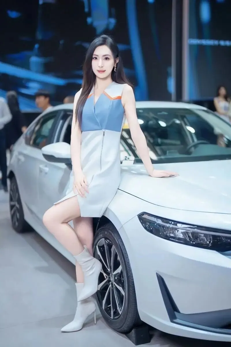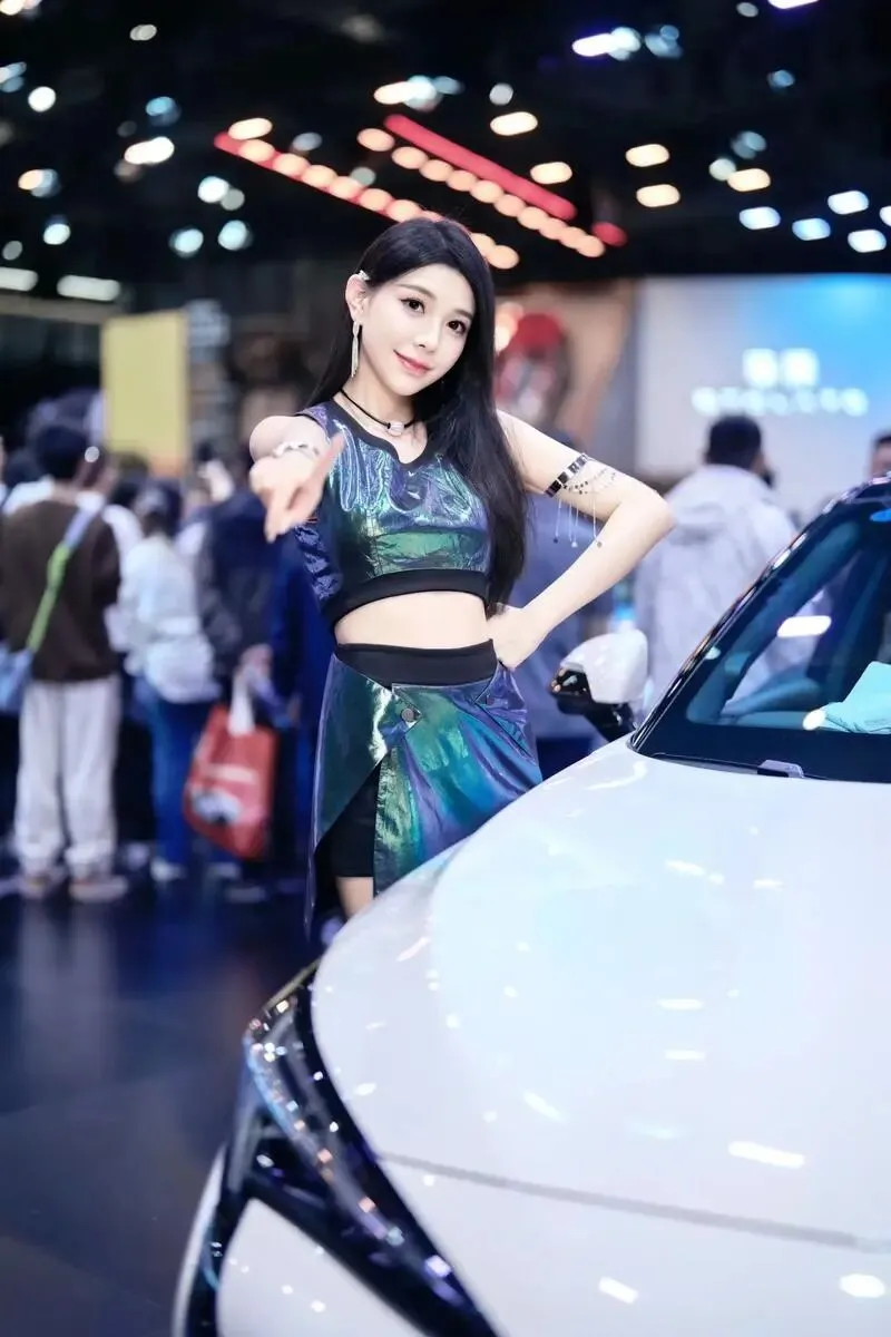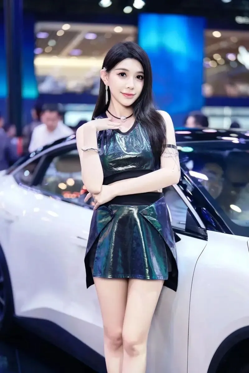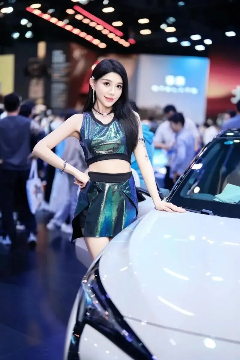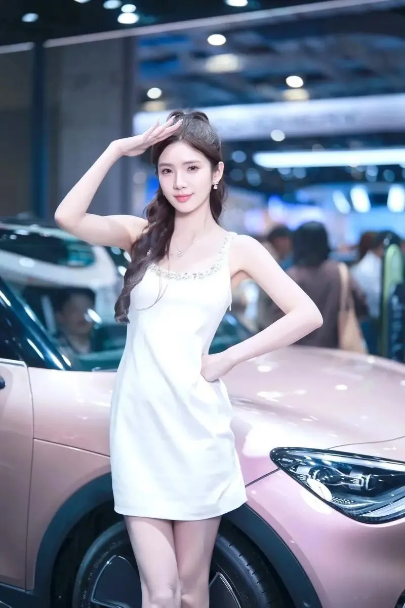 她站在那里,没有刻意摆姿势,只是微微侧身,一只手搭在引擎盖上。但就是那个不经意的侧影,让我在展台前站了整整十分钟没动。