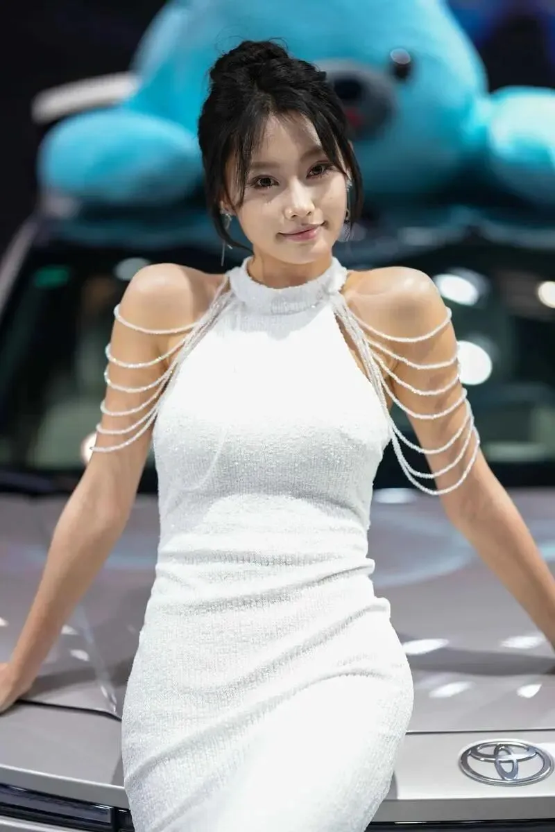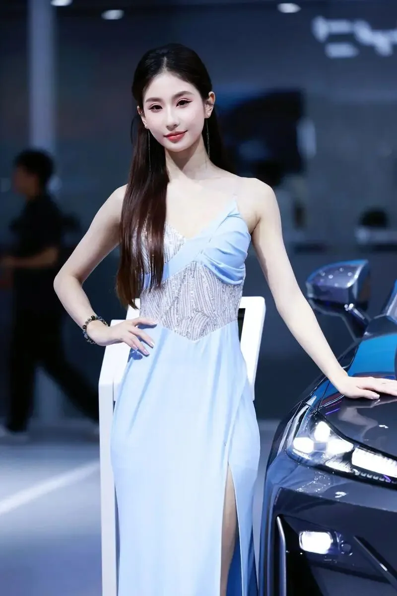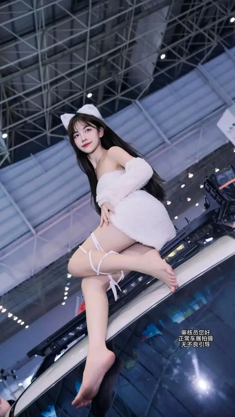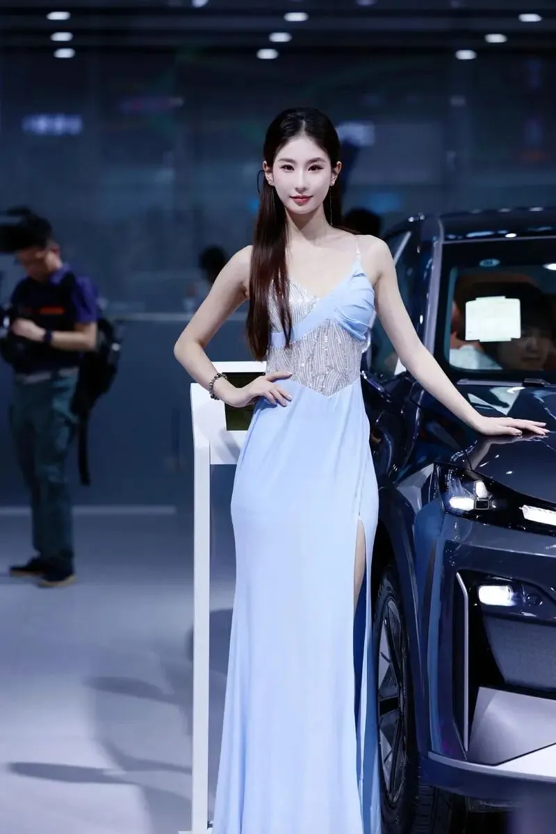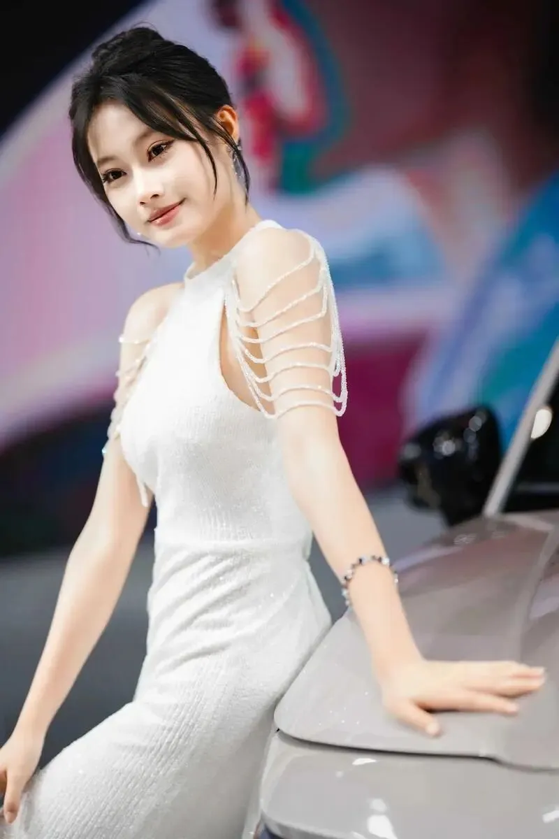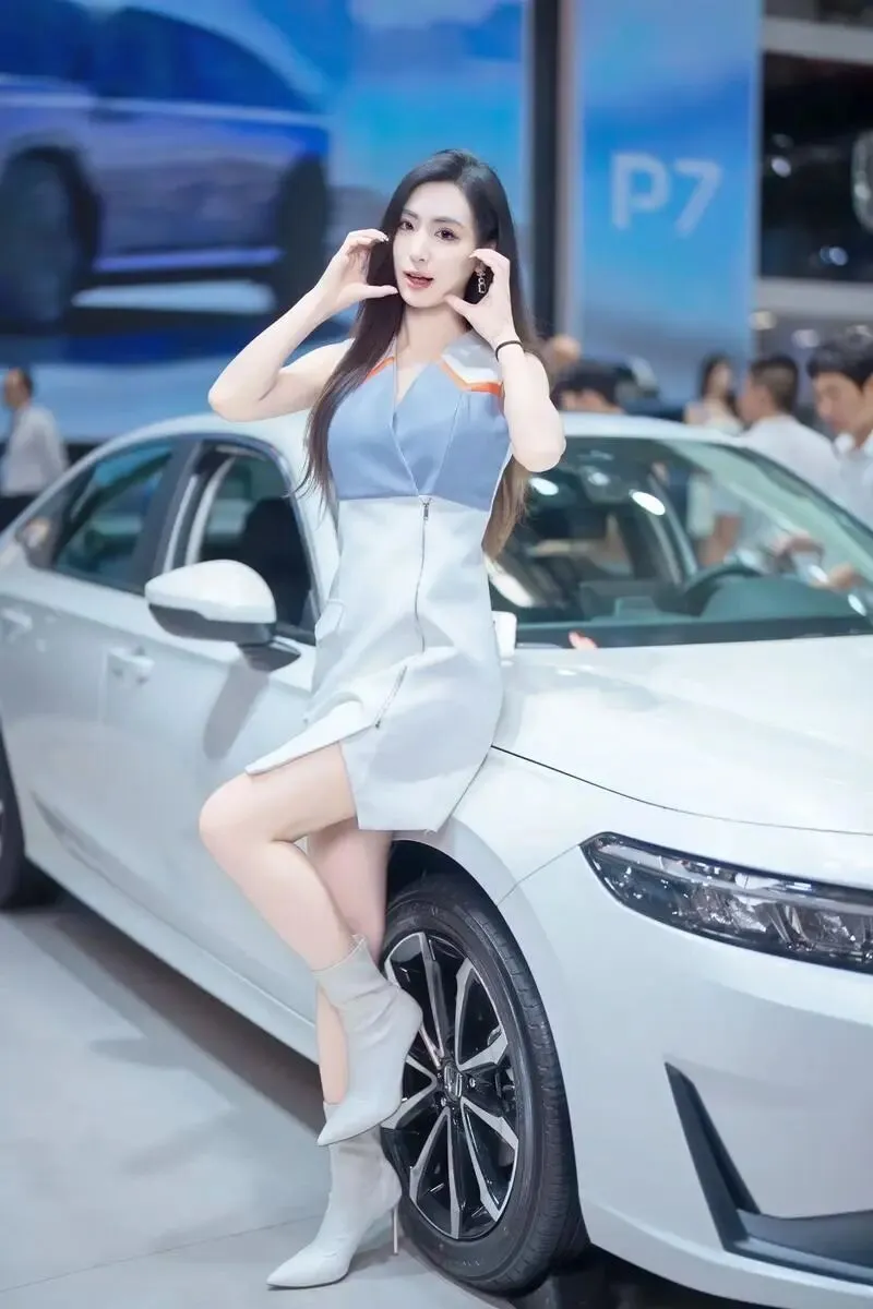 她站在那里,没有刻意摆姿势,只是微微侧身,一只手搭在引擎盖上。但就是那个不经意的侧影,让我在展台前站了整整十分钟没动。