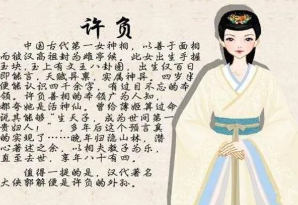 魏王豹的母亲魏媪,请许负为女儿薄姬看相。许负端详薄姬后,缓缓道出:“此女当生天子。”