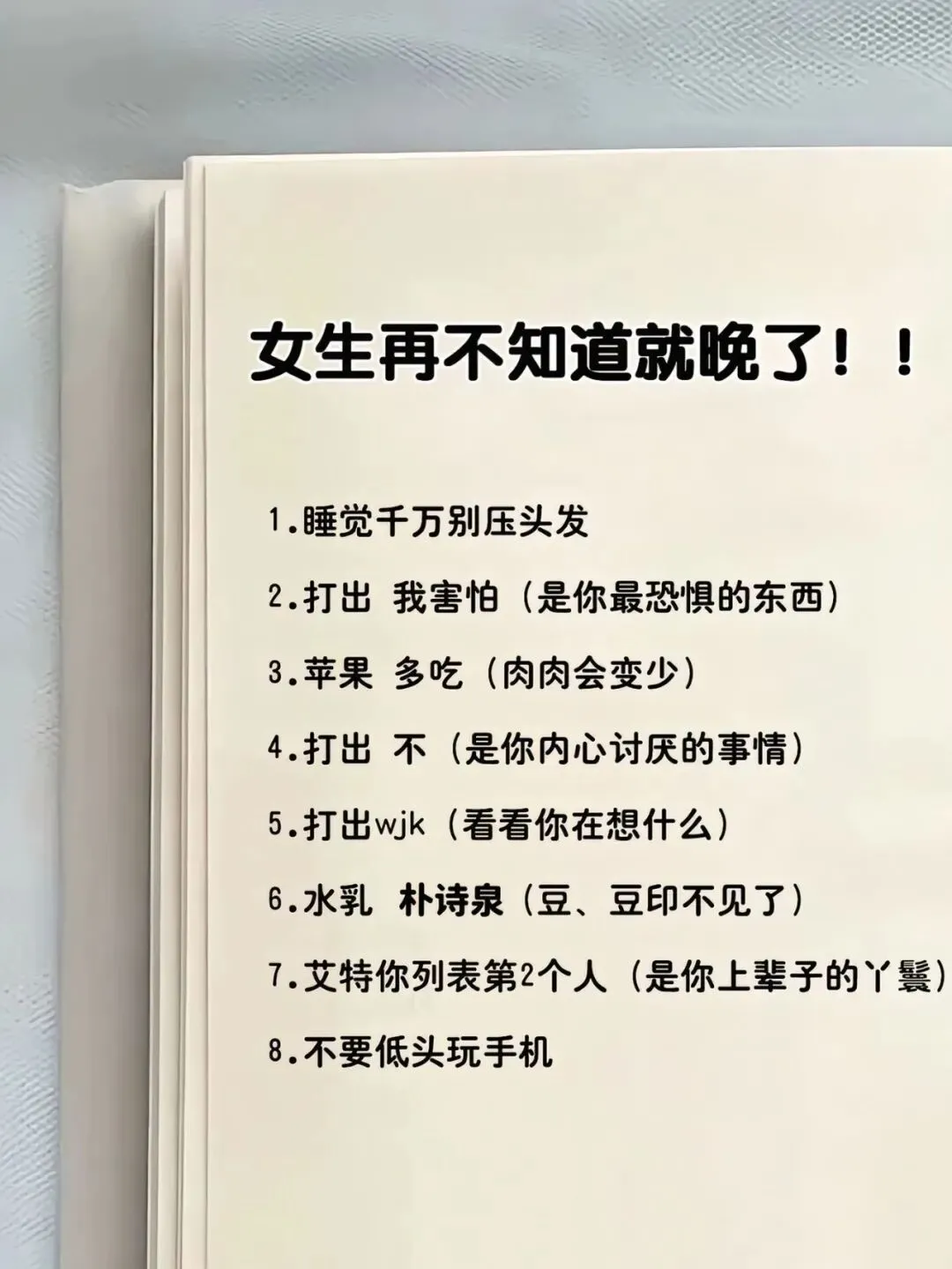 当前位置:首页>美女资讯>女神养成手册丨女生要尽早戒掉的坏习惯!~