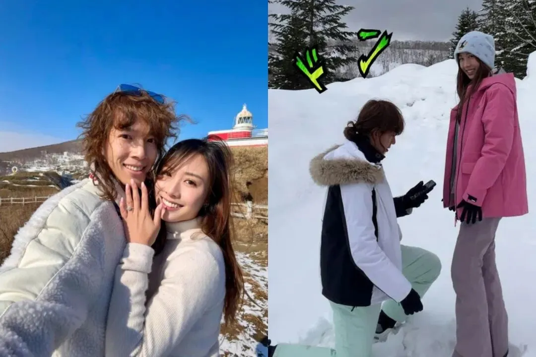 話說早兩日許倚榕同張明偉就去咗北海道預支蜜月旅行,當時男方就喺雪地單膝跪地求婚。