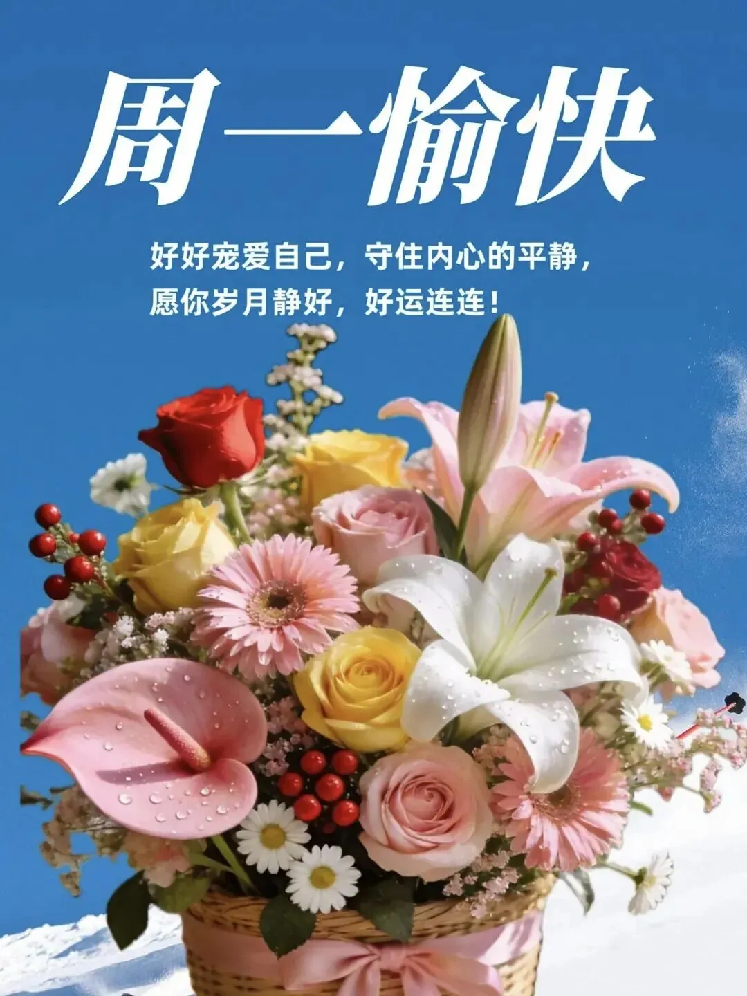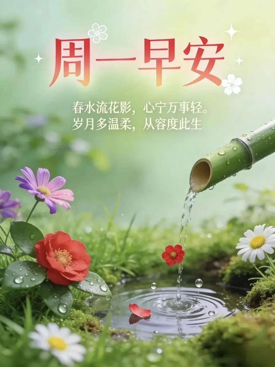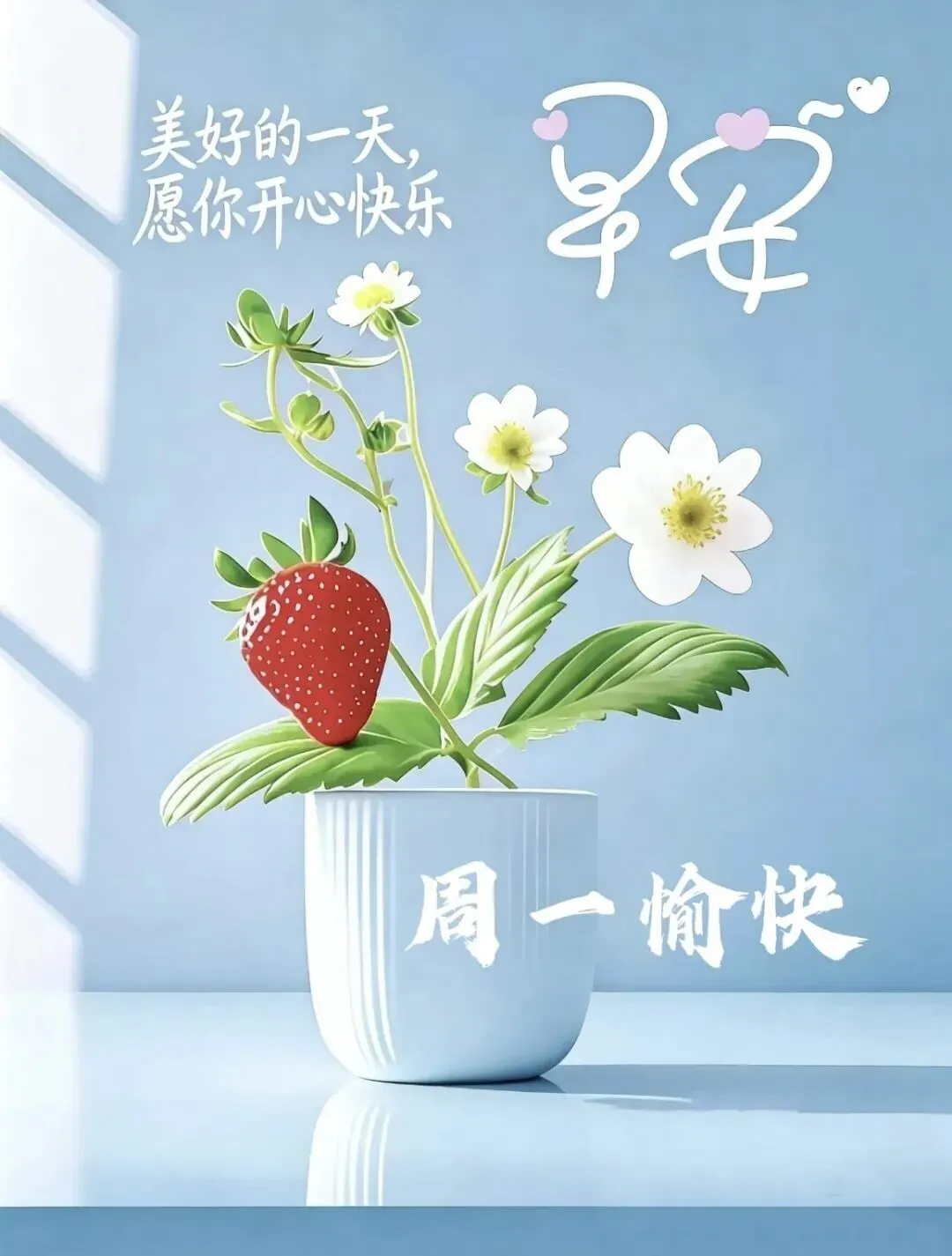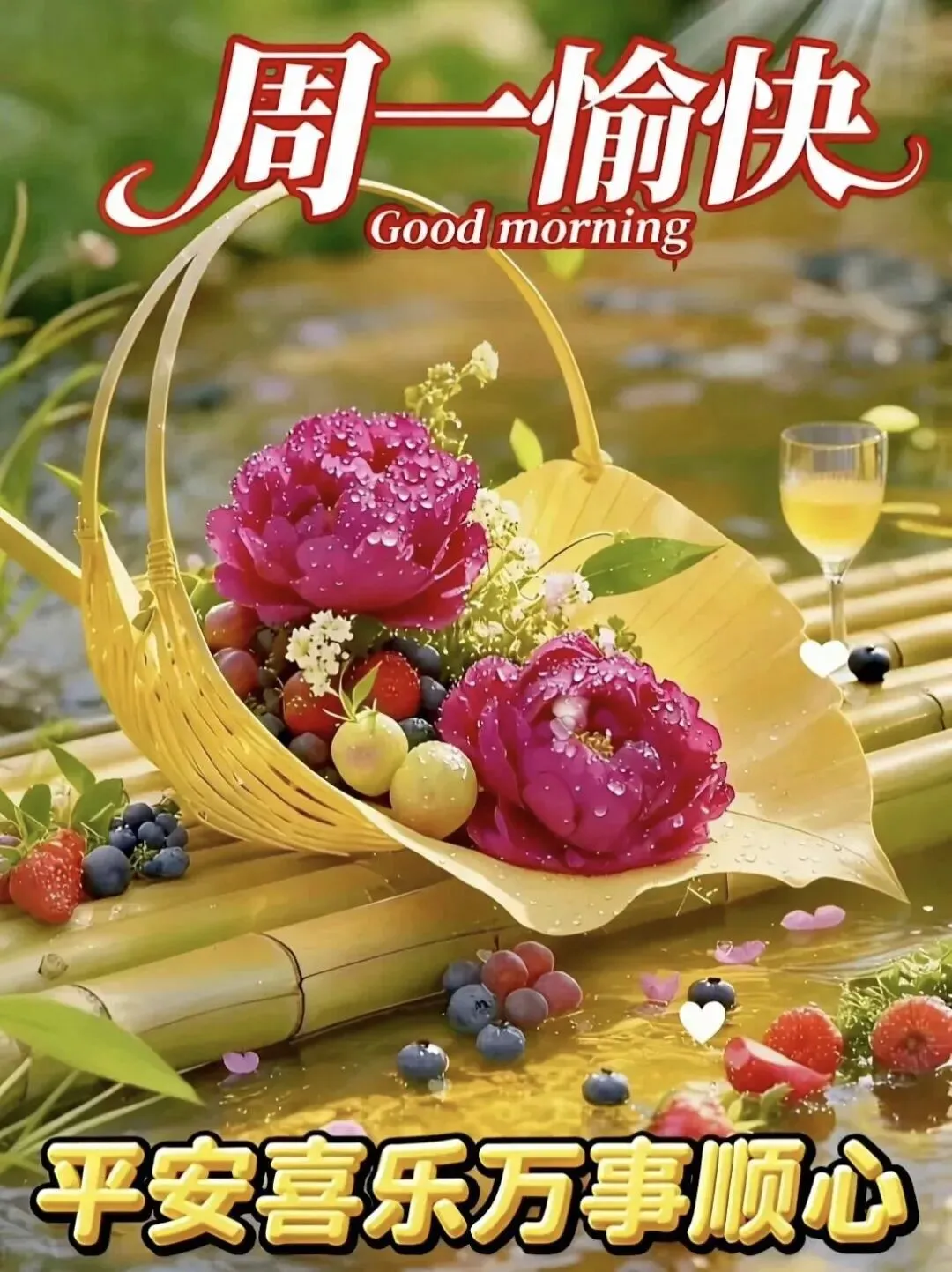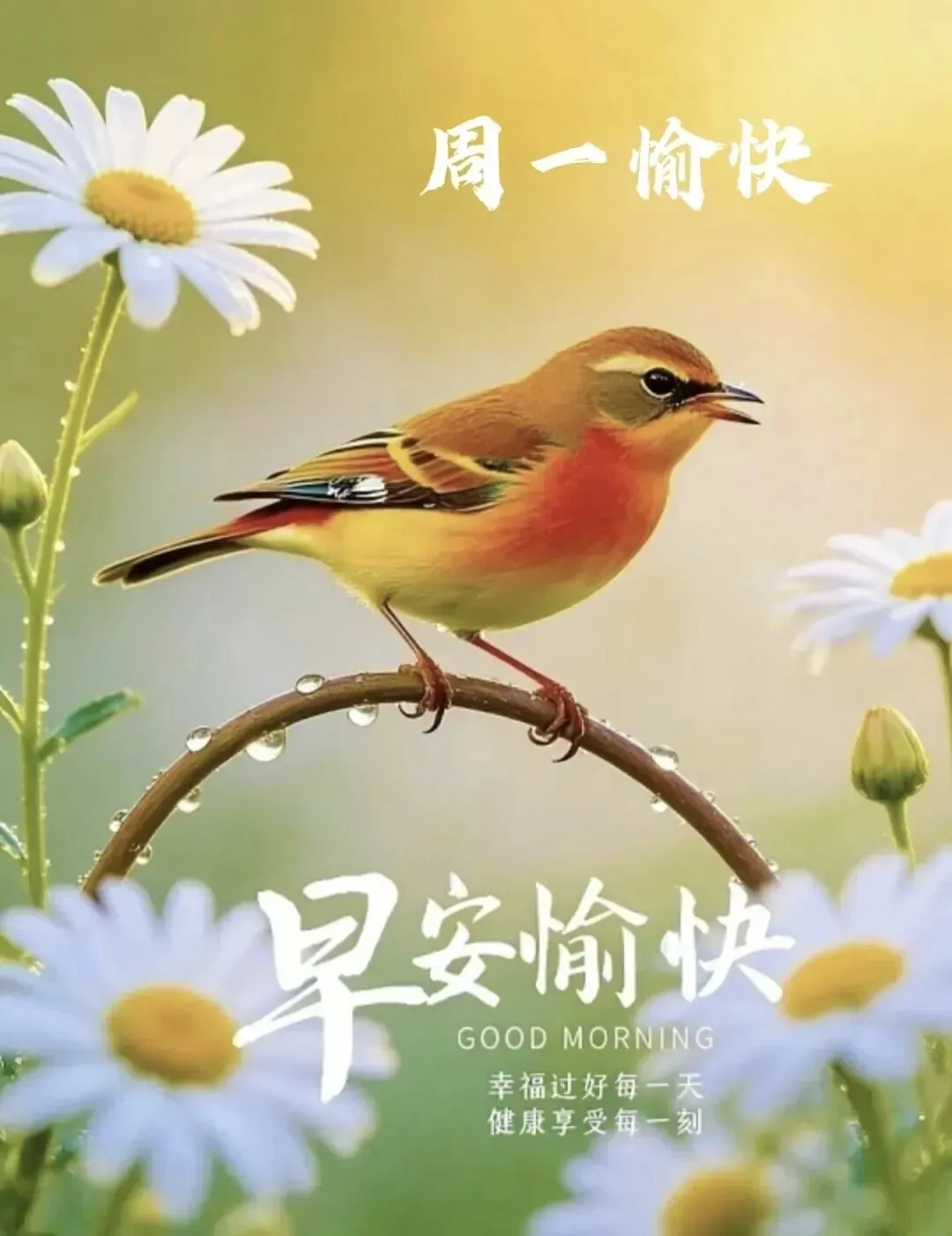 3. 周一早安呀🌤️!把周末的松弛酿成新周的甜🍯,让晨光裹着温柔落在肩头☁️,烦恼全清零清零🎋,好运疯狂叠加📶,事业稳步上升📈,心情永远晴朗☀️,带着满满冲劲开启新一周,一路生花🌸!