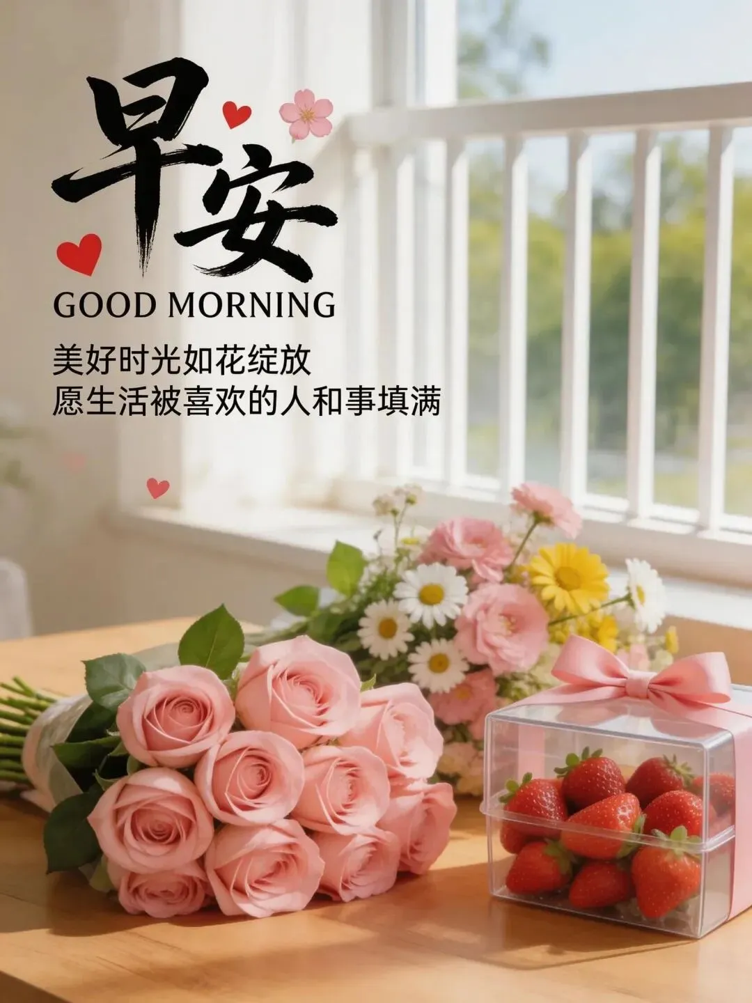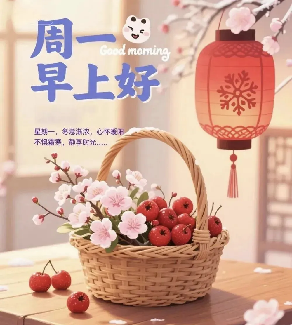 11. 周一早安,新周的好运正在派送中🚚!晨光轻拂肩头,把疲惫都融化成温柔☁️,让元气充满全身💪,工作遇良机💼,生活藏小甜🍊,家人平安,朋友相伴,一路向阳,一路生花🌼!