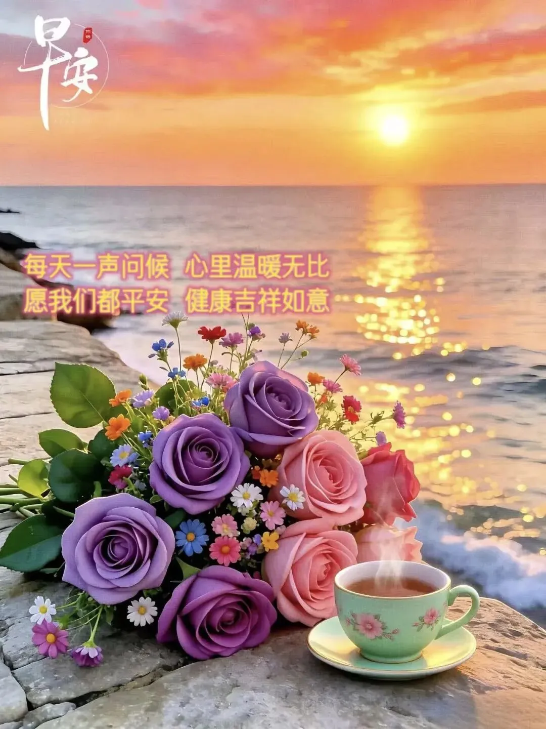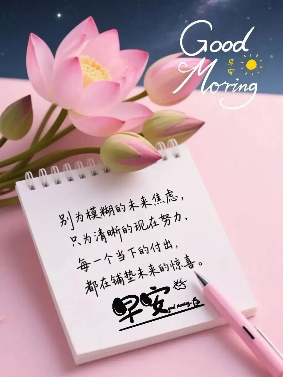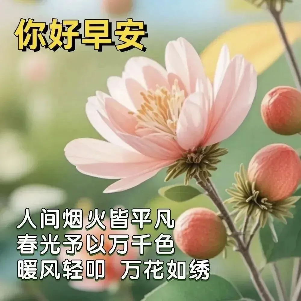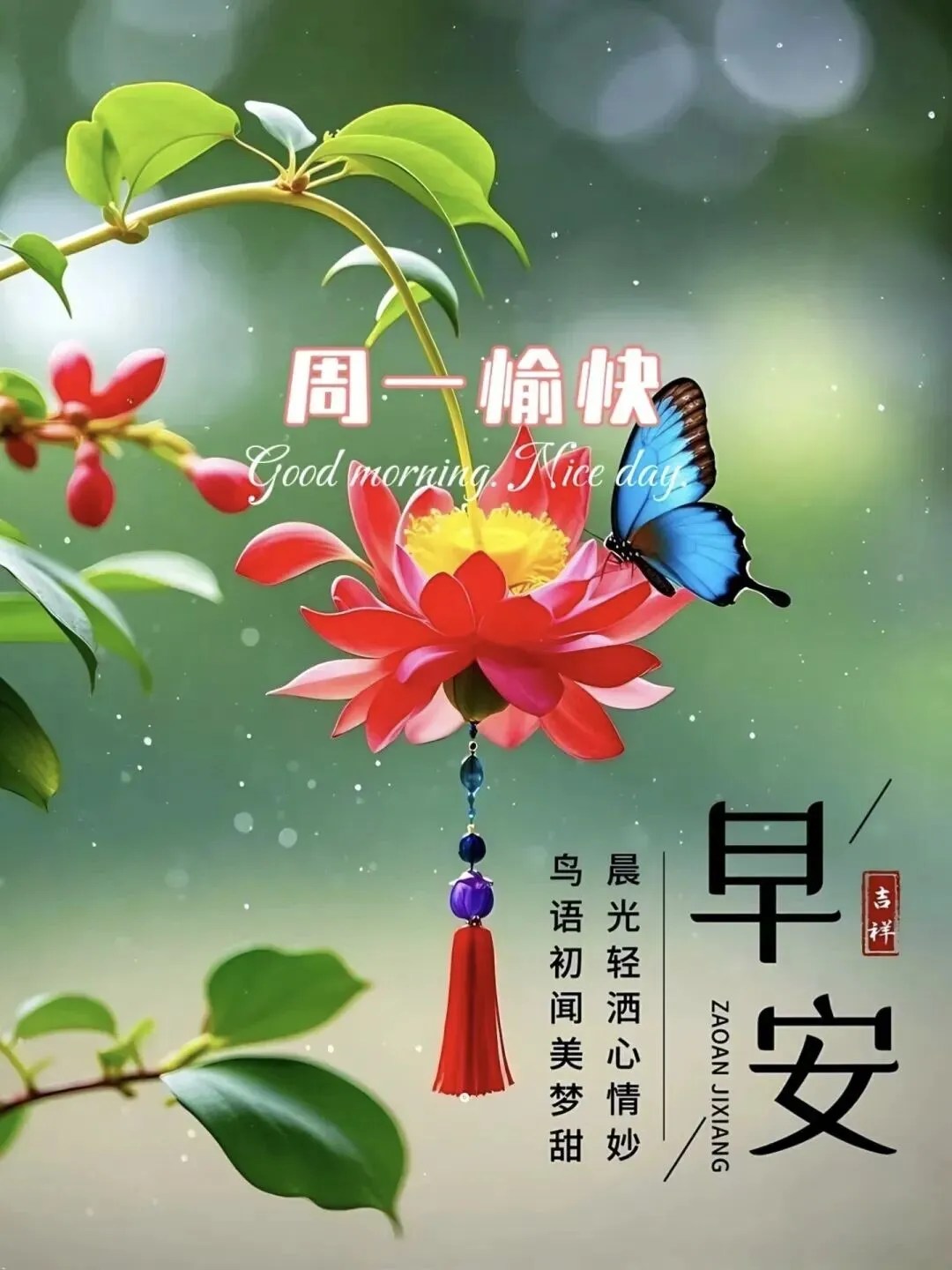 4. 新周第一缕晨光,是给你的专属好运符✨!周一清晨的风携着清甜🍃,吹散所有烦扰,给你满格能量🔋、稳稳福气🍀,职场遇机遇💼,生活有欢喜🏮,三餐暖、四季安,周一早安,顺遂无忧🍵!