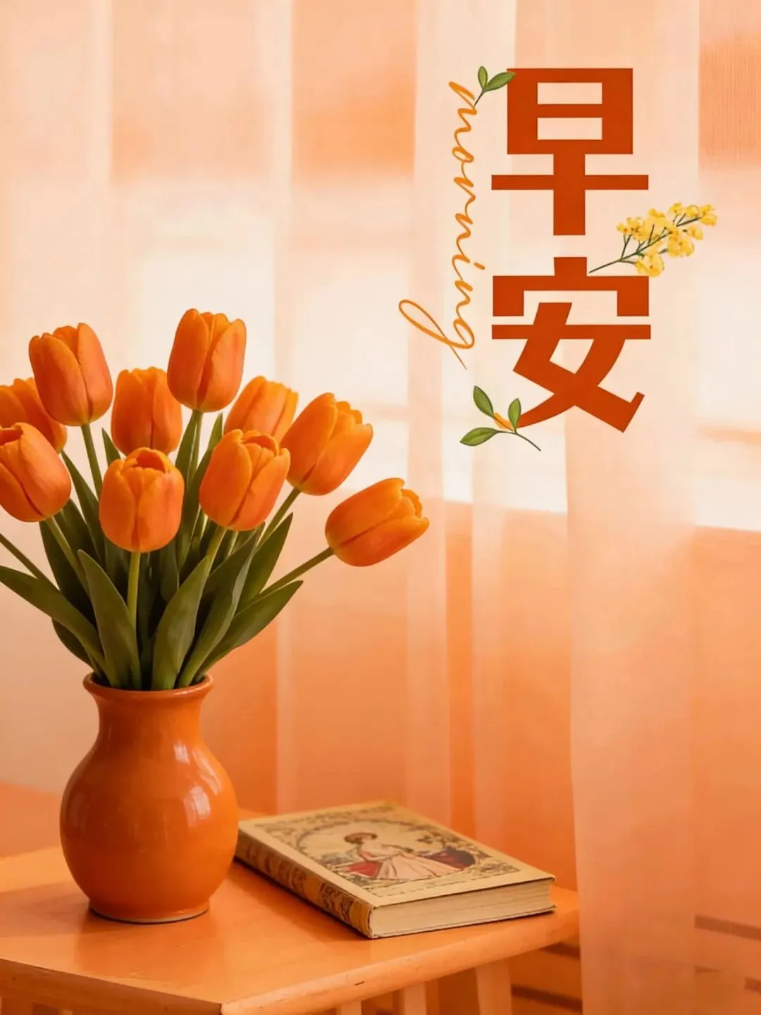 8. 新周第一天,把所有好运都揉进周一的清晨🍊!晨光暖融融裹着欢喜🌞,扫掉周末的慵懒,给你无畏的勇气💪,职场乘风破浪📈,生活暖意绵绵🏮,三餐四季皆欢喜,岁岁年年皆顺遂,周一早安呀🌸!