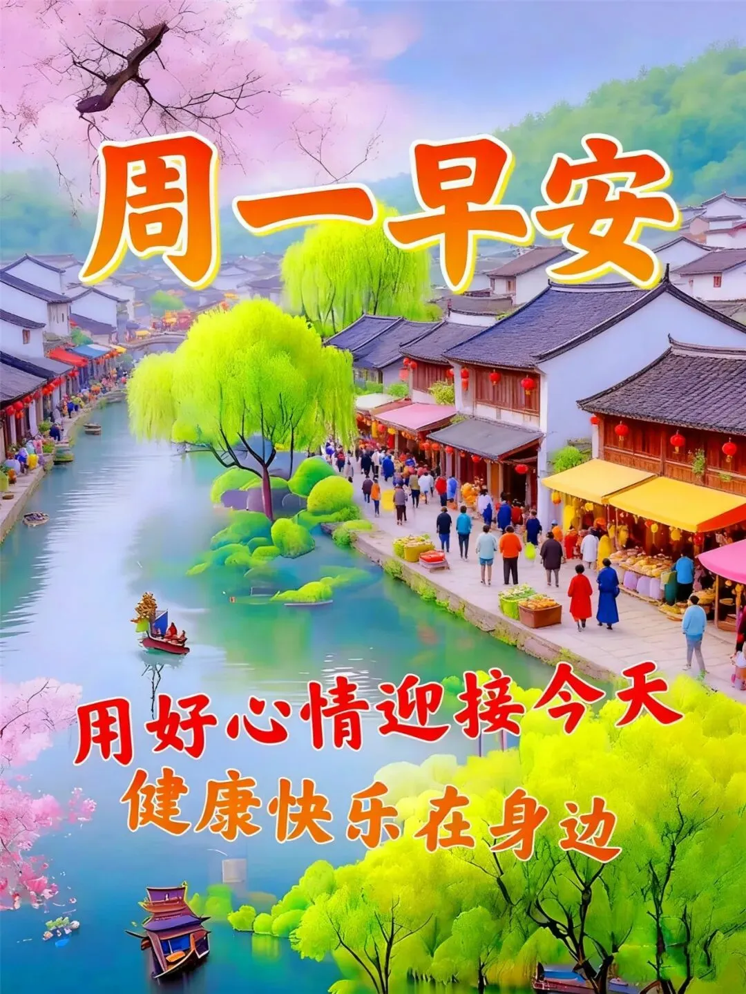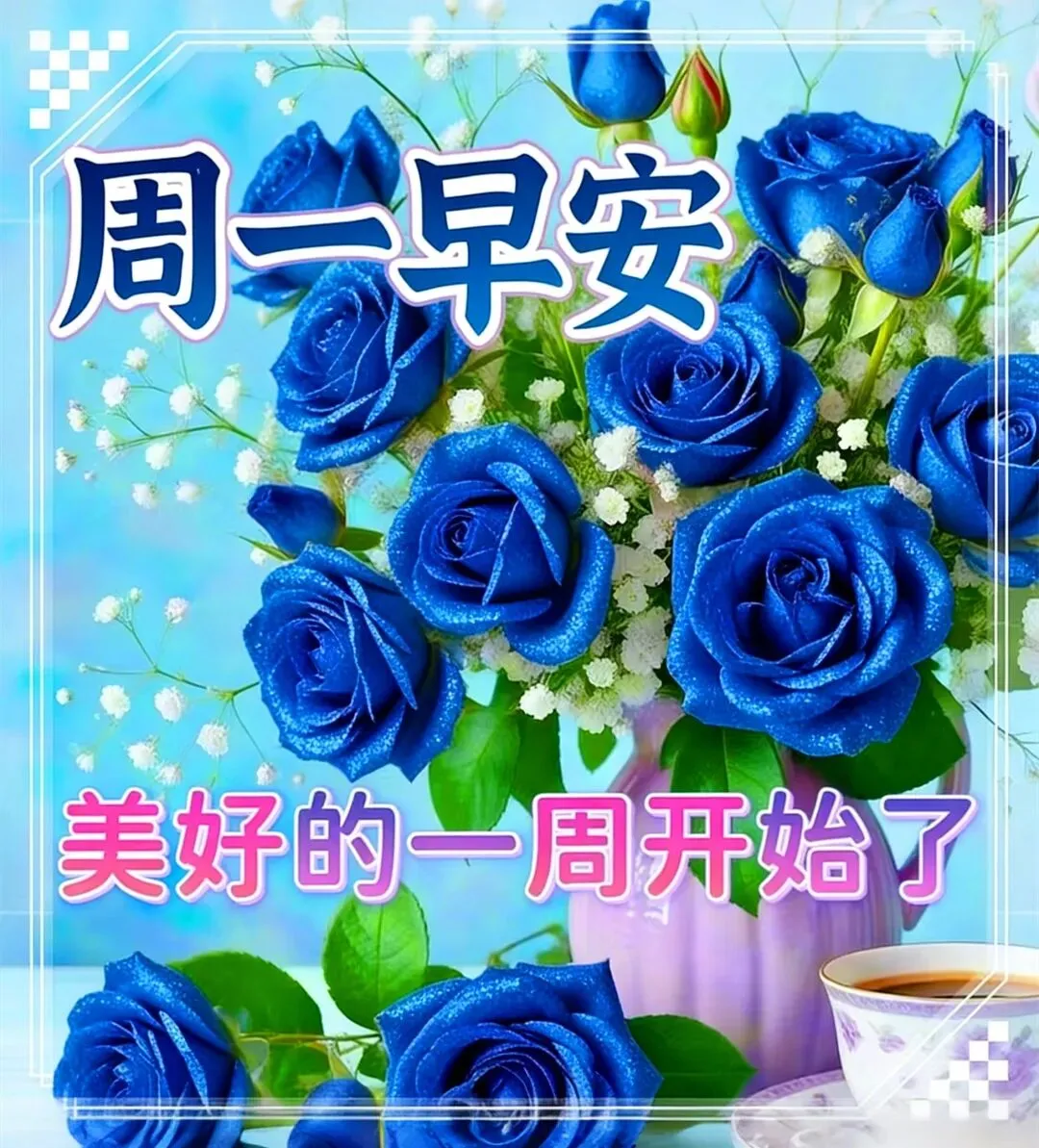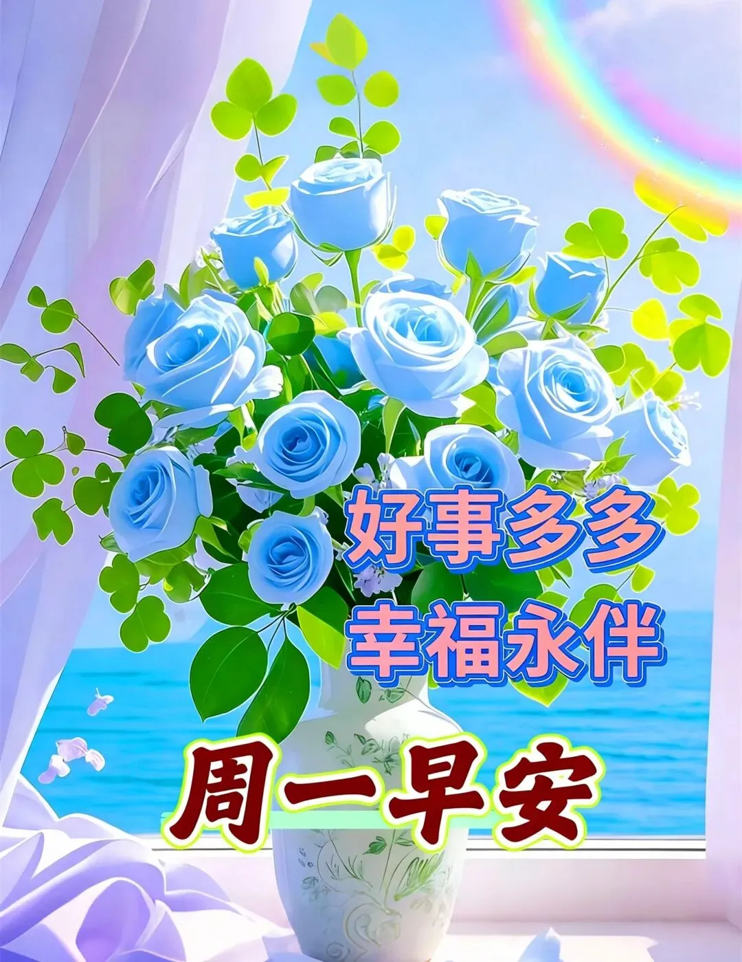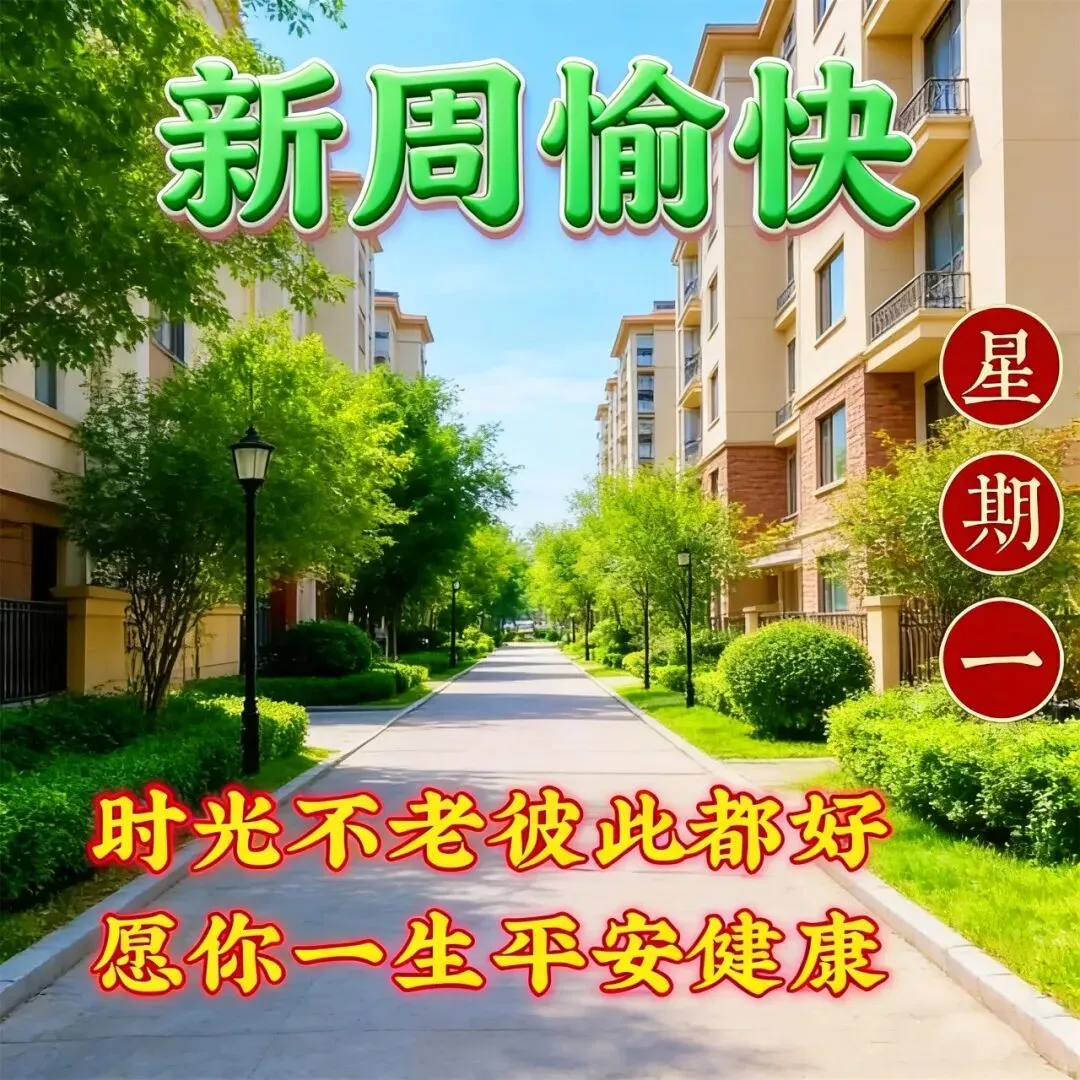 周一早安!开启新篇章📖,花开伴晨光🌸,温柔满心房💖。愿这一周🍀,好运与你相伴🌟,美好与你同行🌈。工作顺利💼,生活舒心🏡,家人安康👨‍👩‍👧‍👦,朋友常念👫。日子温柔。🍏
