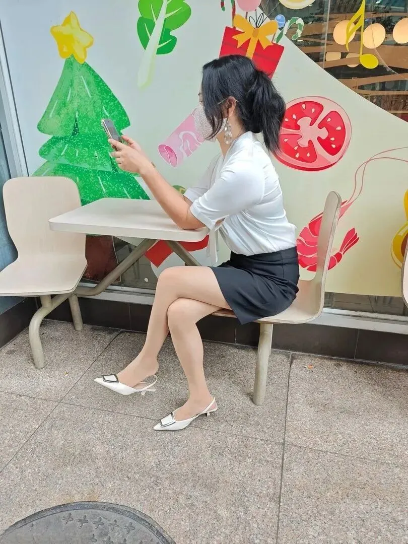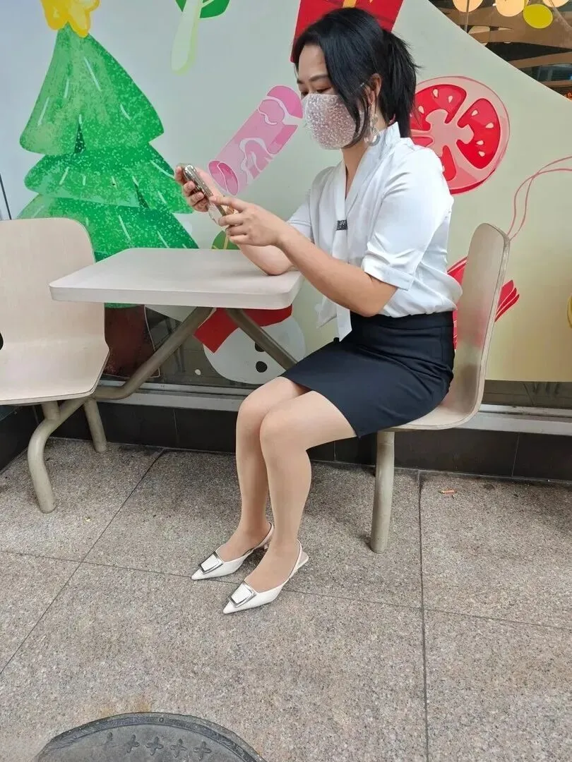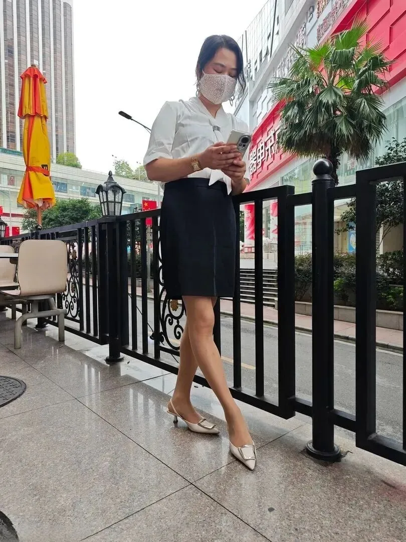 中午休息时间,换一种方式放松心情。缎面材质白衬衫本身就有着高级气质,在领口处有飘带随风轻拂的时候看起来更柔软温婉。选择一件修身的黑色包臀裙,瞬间就能感觉到有曲线的感觉。穿上一双白色的尖头白鞋子,在街边低头玩手机,这样惬意的感觉真是太舒服了。蕾丝口罩有隐有现,多了一种神秘的美感。