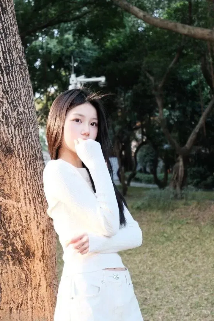 如果你想穿得温柔又带点小气质,这绝对合适。小姐姐选择了米白色的长袖针织上衣,穿在身上既合身又美观地突出了身体的曲线。圆领设计使纤细的锁骨暴露出来,有格调。下身是一条米白色高腰阔腿牛仔裤,高腰设计一下就把腿拉长了,身材比例超好。整体为同色系,简单高级。她在树下站成一个“小人国”,双臂后缩地倚着身子,似一个“有福之妇”,脸庞有丝丝含笑之态。