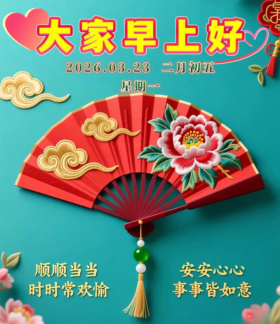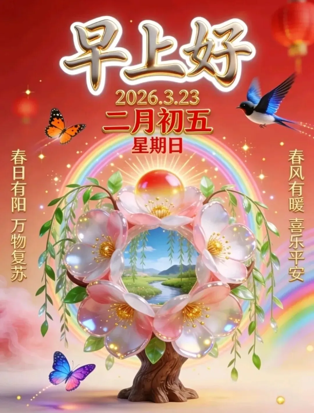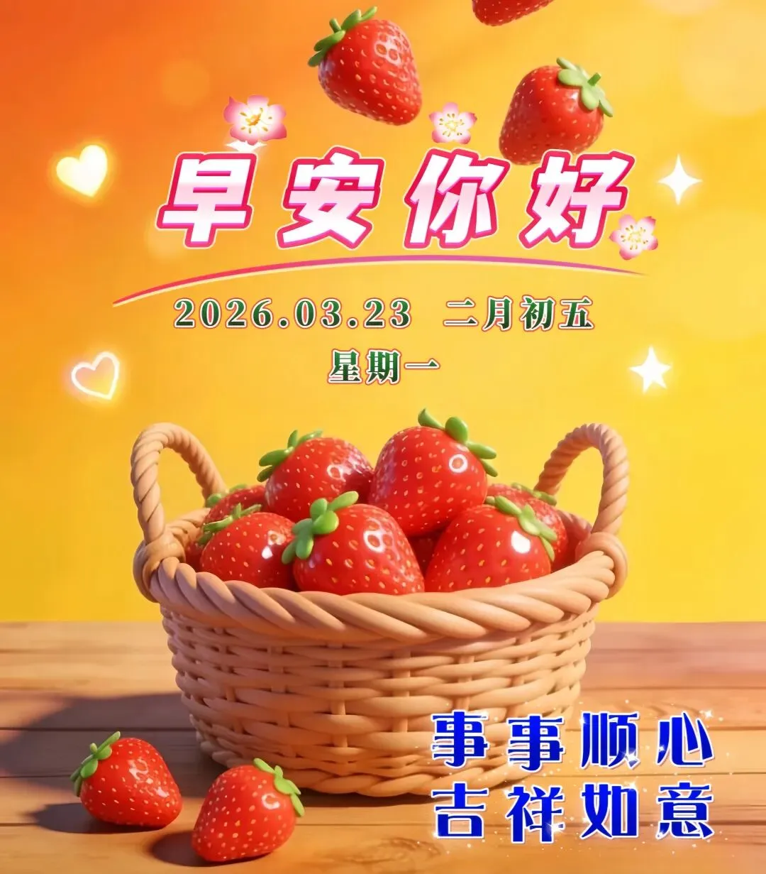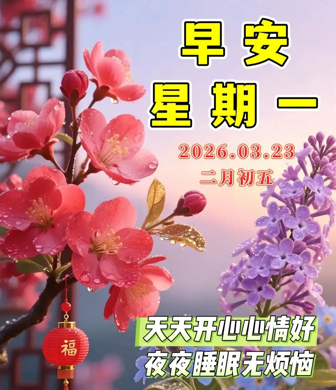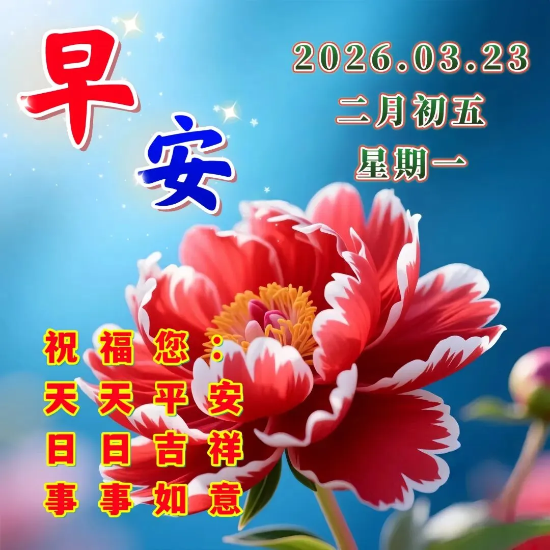 🌈今天是3月23日,🌞清晨问候心情好,🌹乐观心态很重要,🌊开心快乐人难老,💖甜蜜生活乐逍遥。🌺平平安安身体好,💓健健康康向未来!🌷周一早上好🌅