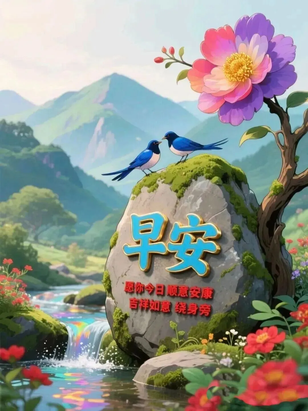 🎄蓝天载如意,白云寄安康;🌊青山托幸福,绿水带吉祥。🎈让我们:好运一起走,🎉健康一起守,平安手牵手,🍃快乐共拥有,周一早上好!🍄